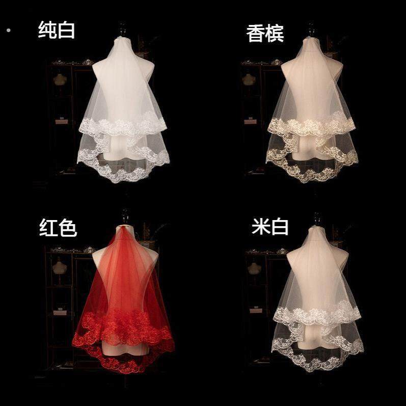 📚 红色中国风结婚新娘红盖头半透明头禾服喜帕中式婚礼头纱头饰