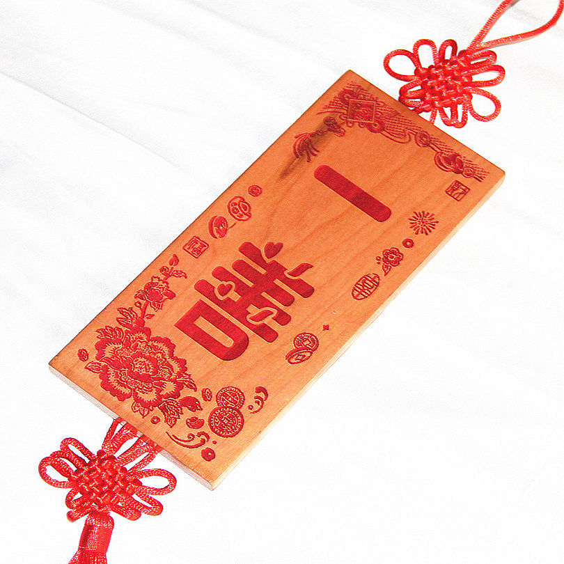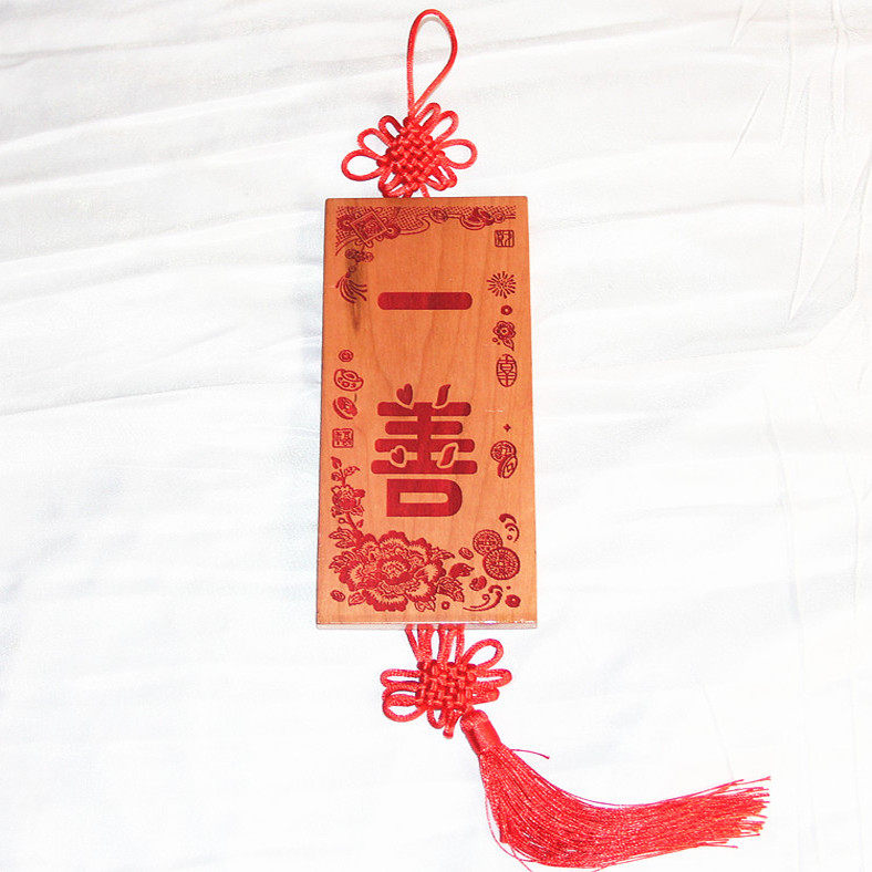 📚 桃木雕刻 富贵牡丹版朱砂红色一善 挂件支持个性定制