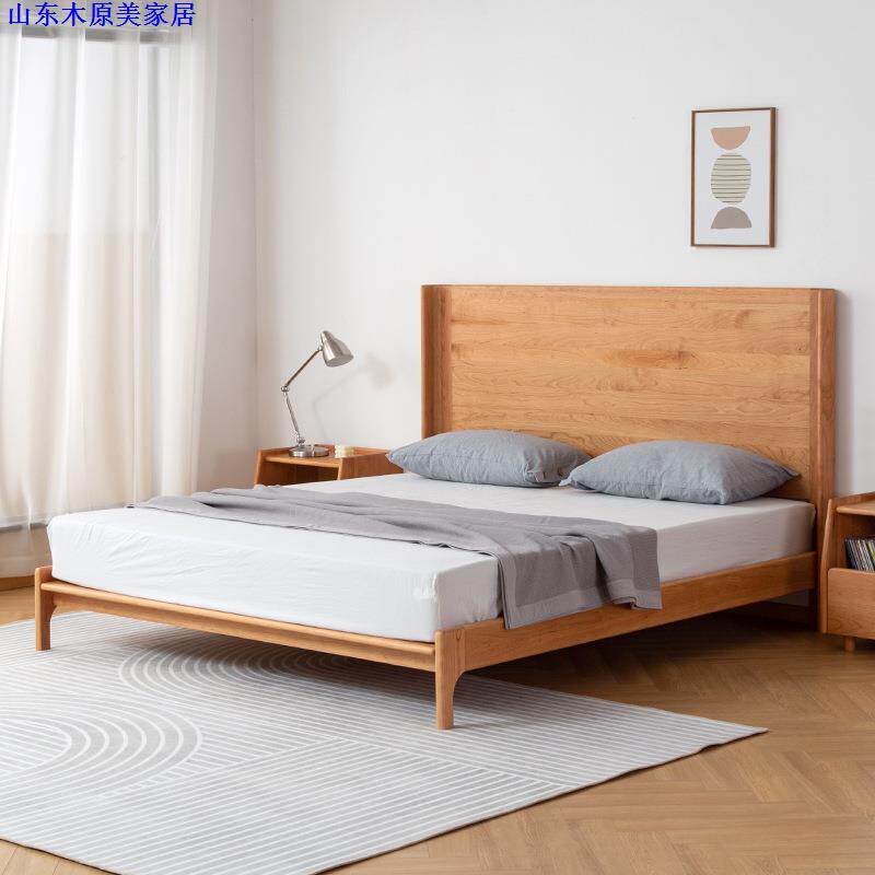 📚 纯实木双人床北欧樱桃木橡木大床小户型1.5日式现代主卧1.8米婚床