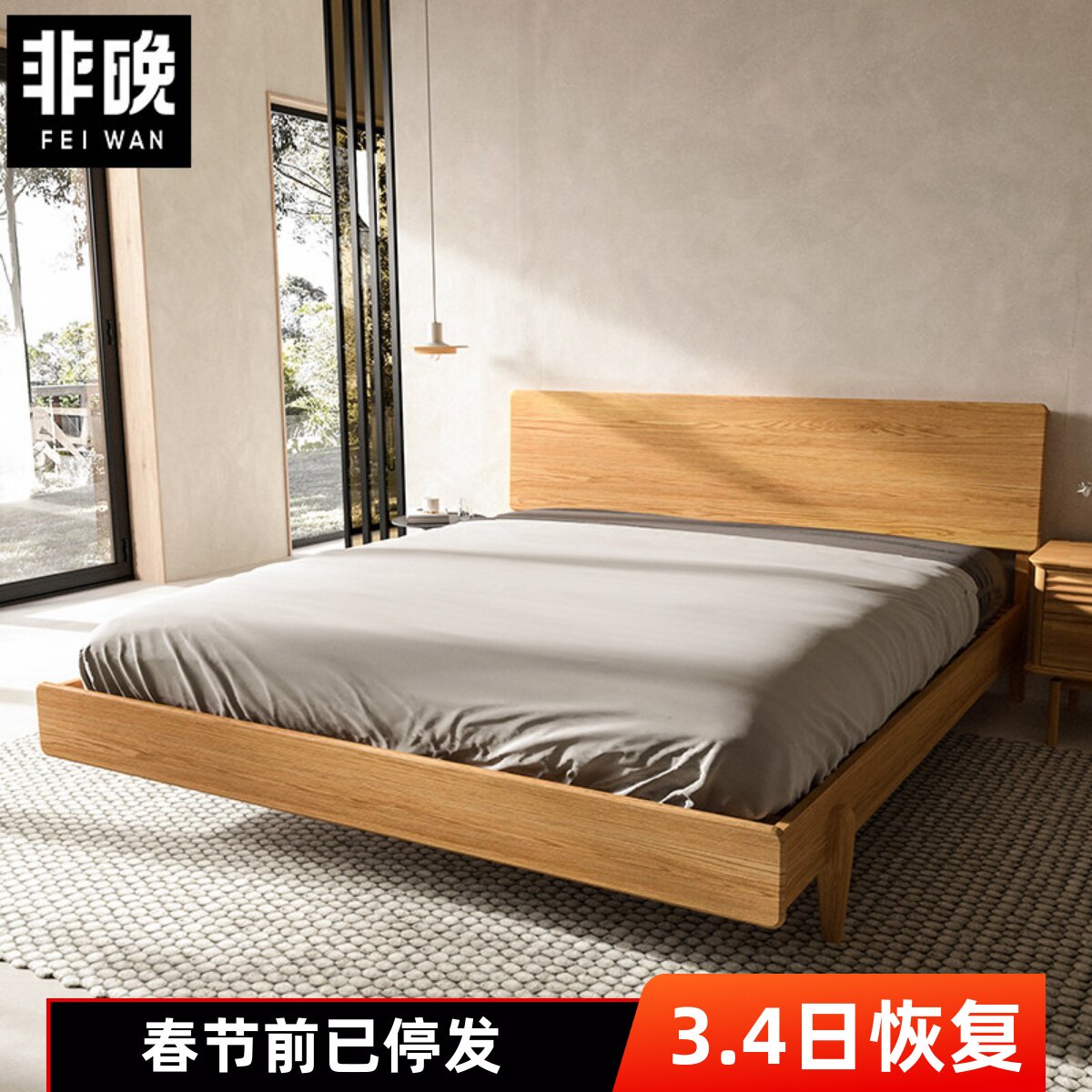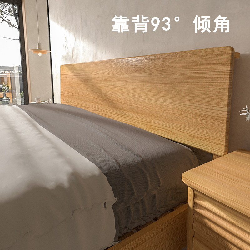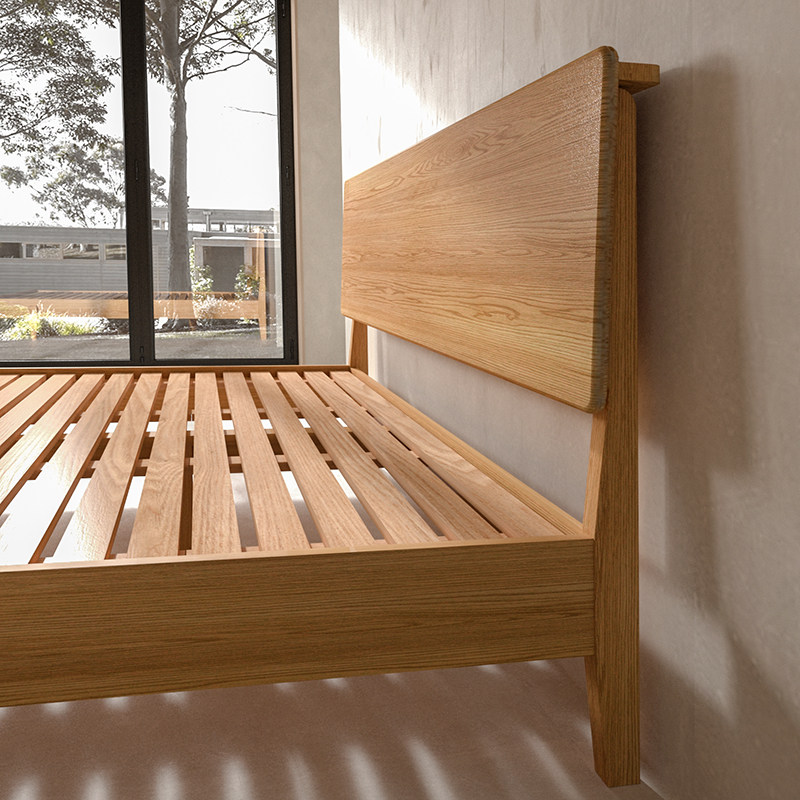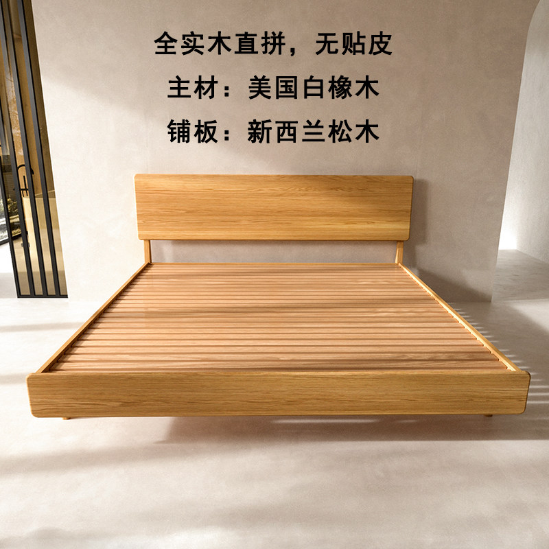 📚 全纯实木床橡木双人床北美白橡原木大床小户型北欧简约排骨架主卧