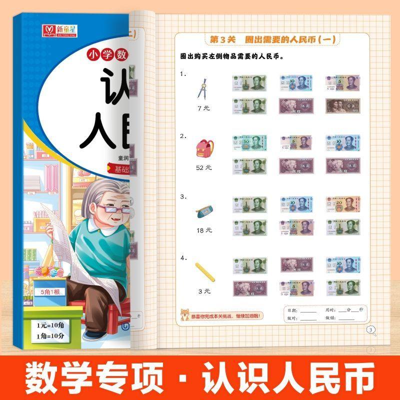 📚 小学数学专项训练认识人民币的教具钟表和时间模型学具长度单位换小学一年级二年级三年级儿童元角分换算练习题幼小衔接