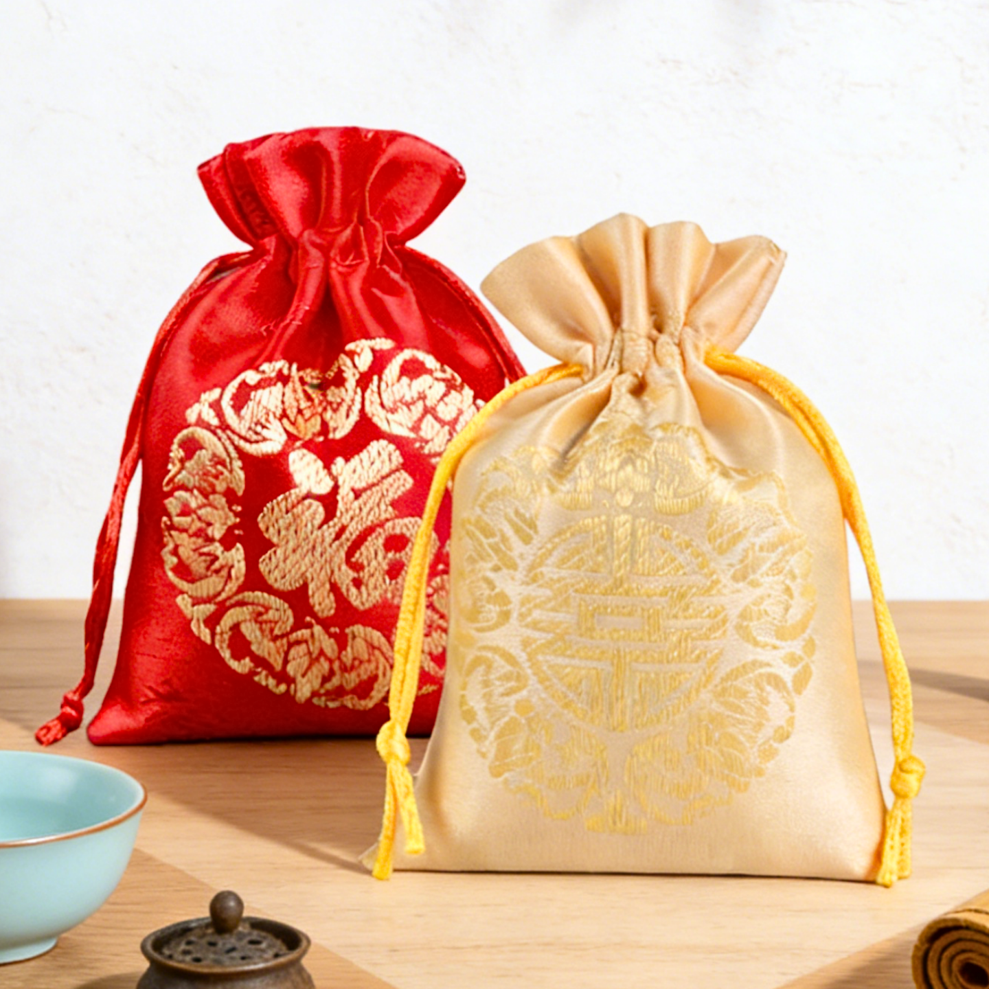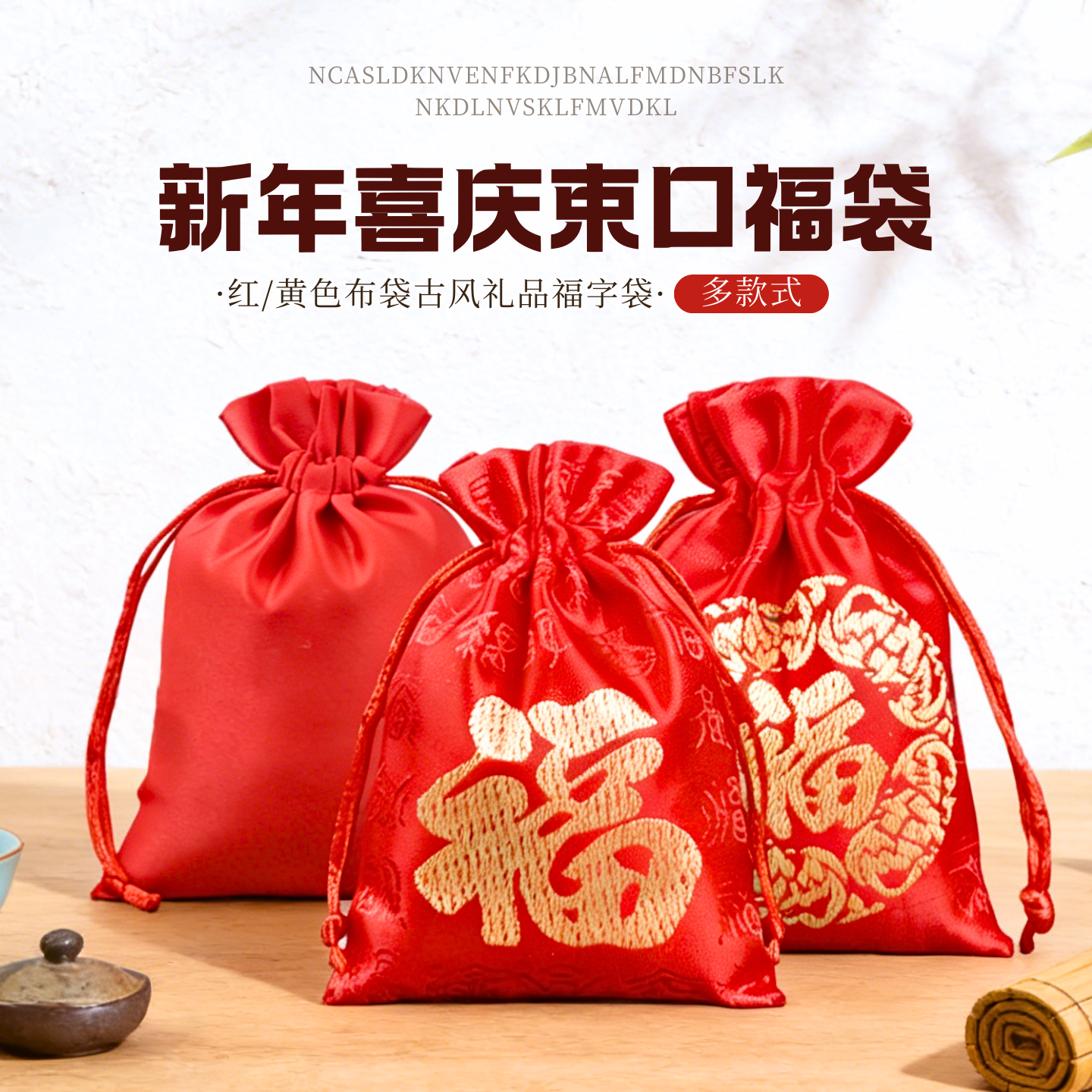 📚 2026年新年喜庆束口福袋红色布袋古风礼品首饰袋抽绳式喜糖袋方形
