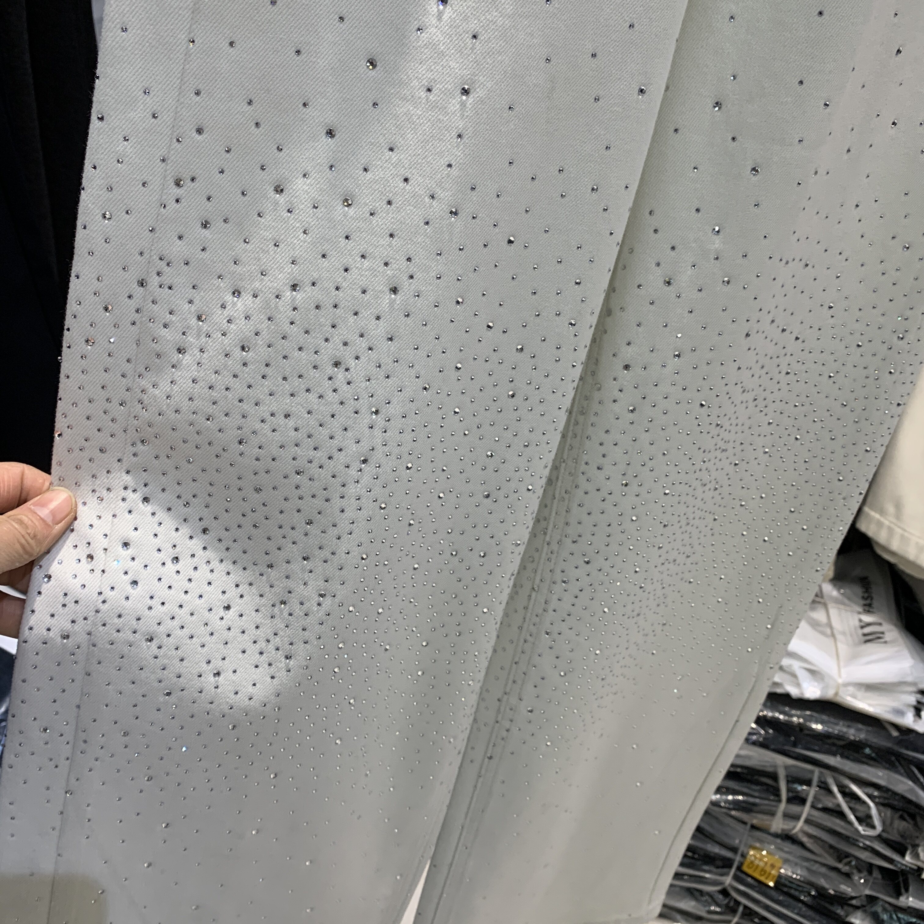 38¥ HU293 gGOGUL48ZZT¥ https://m.tb.cn/h.7zJ4bN0 Aiyueniao爱月鸟A8231-3春款弹力米白色烫钻女高腰直筒阔腿牛仔裤 --------------------- 【原售价】149元 【现售价】149元。