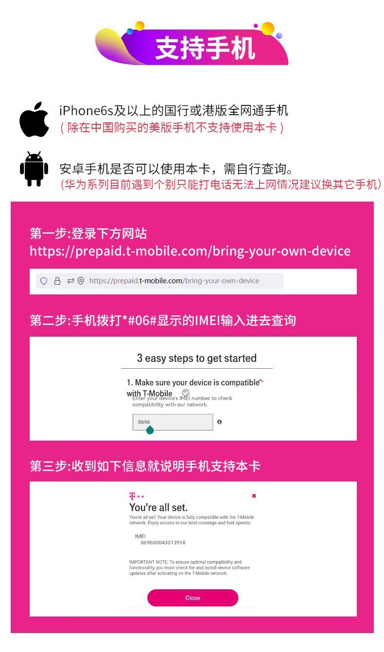 📚 美国电话卡T-mobile手机卡4G/5G无限高速流量上网卡旅游支持esim