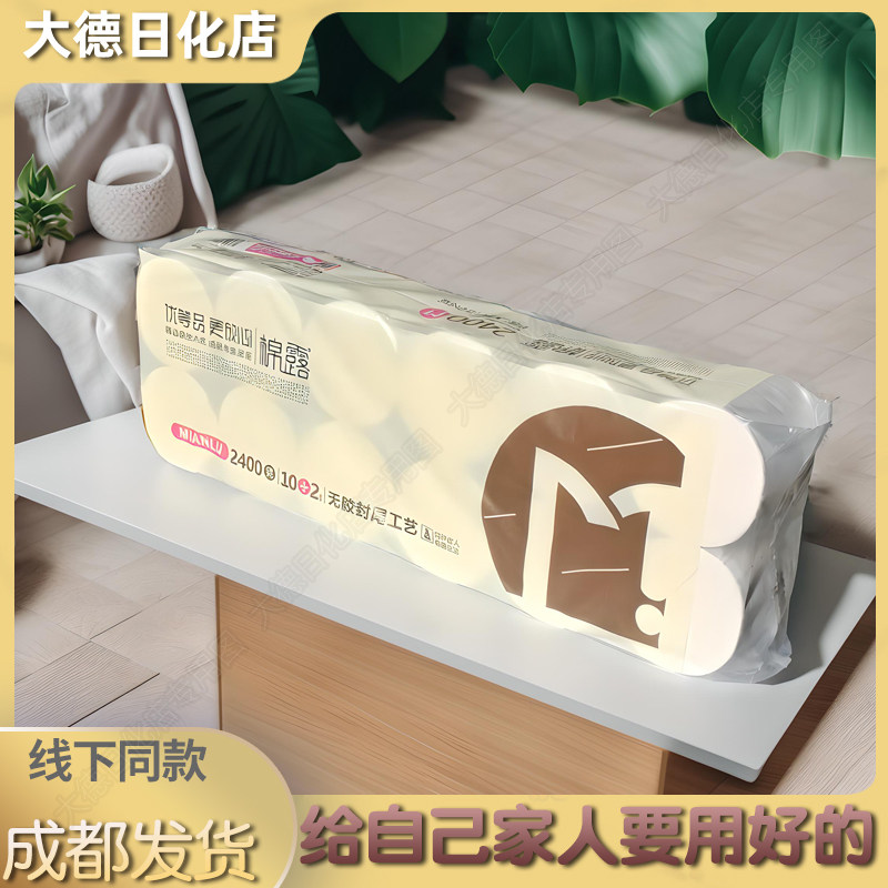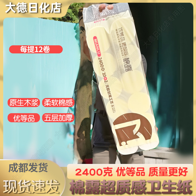 📚 棉露2.4公斤装实心全木浆卷纸卫生纸 12枚装 五层优等品厕纸