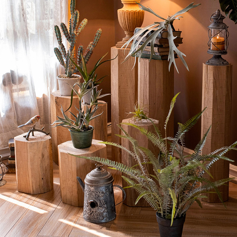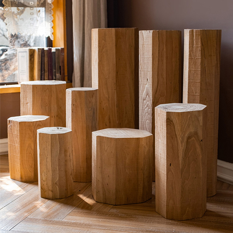 📚 实木几何柱子自然北欧装饰摆件花架边几设计师民宿展厅展示架DIY