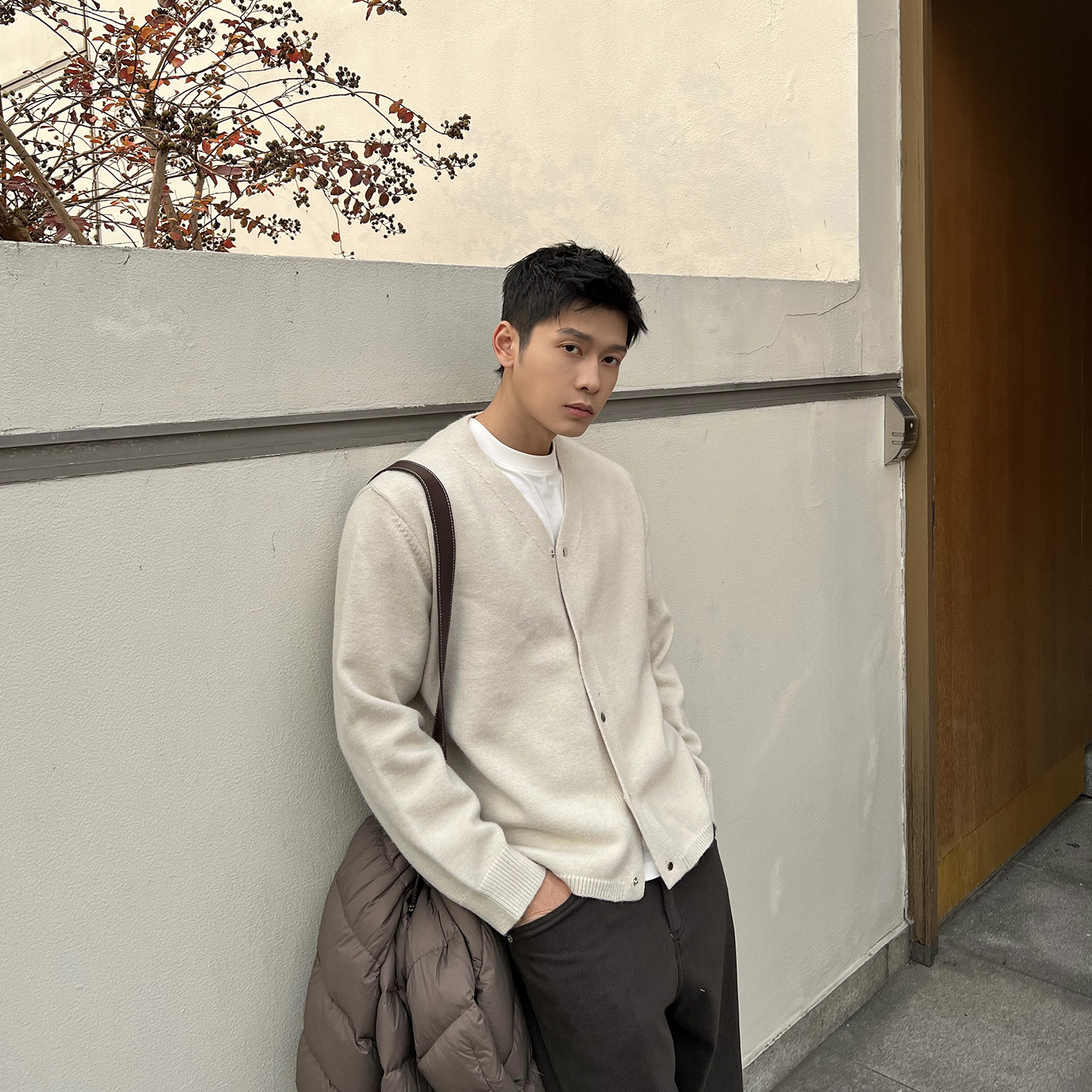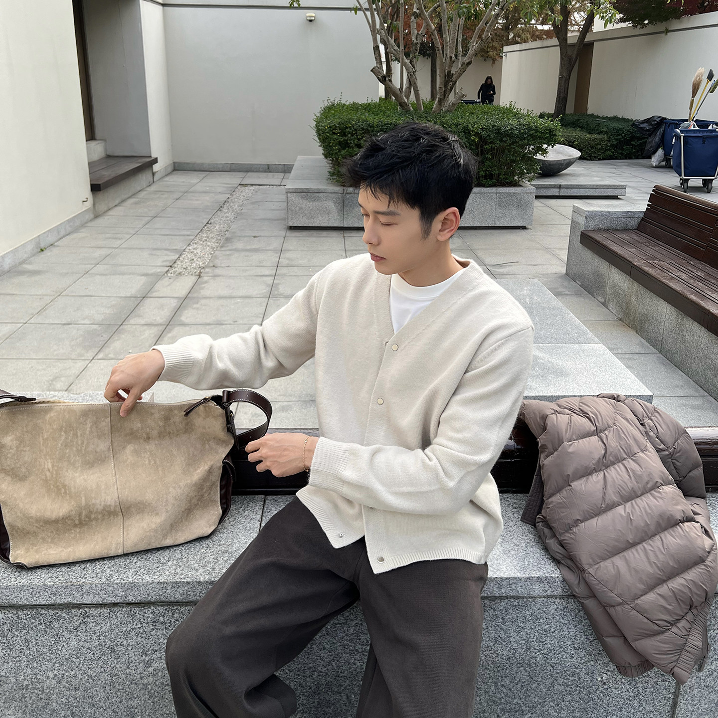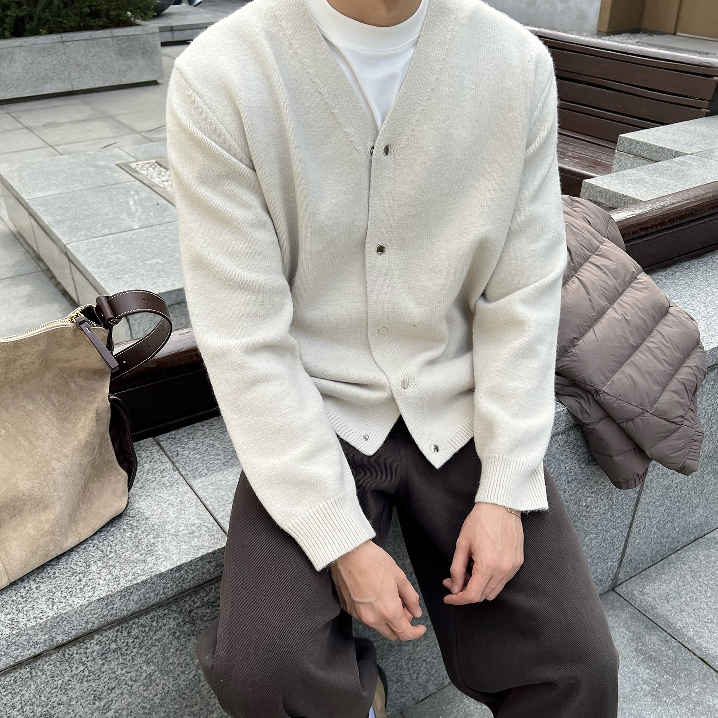 📚 马克斯星球 极简风纯色开衫上衣男冬季新款V领长袖针织衫毛衣外套