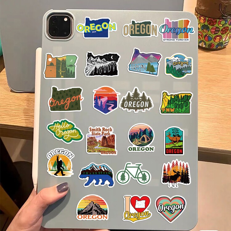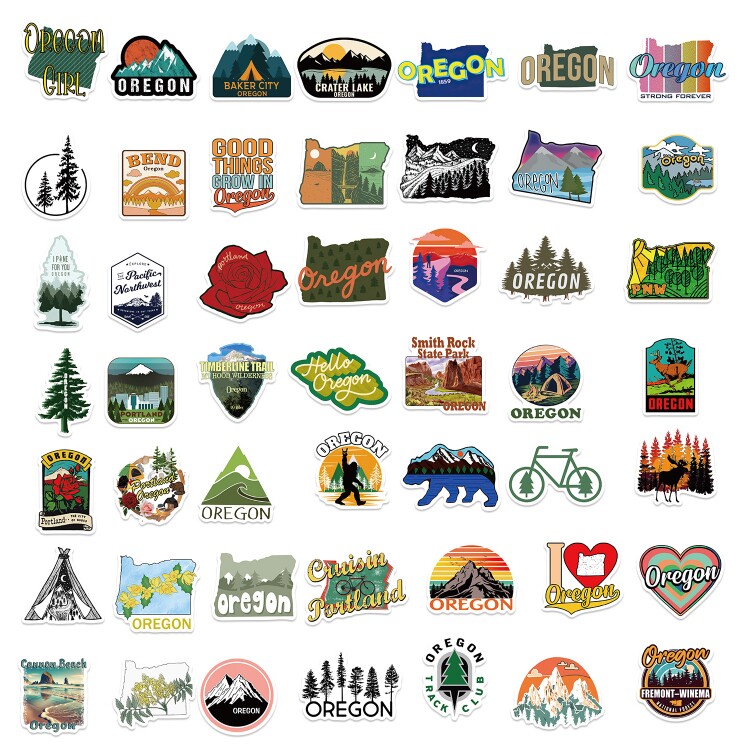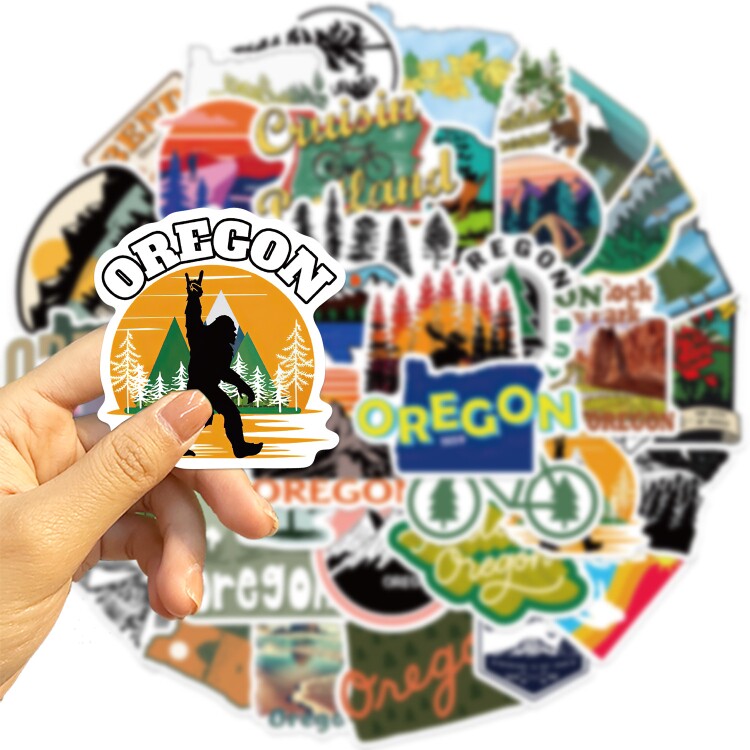 📚 50张美国Oregon俄勒冈州风景涂鸦贴纸笔记本手机壳水杯防水装饰