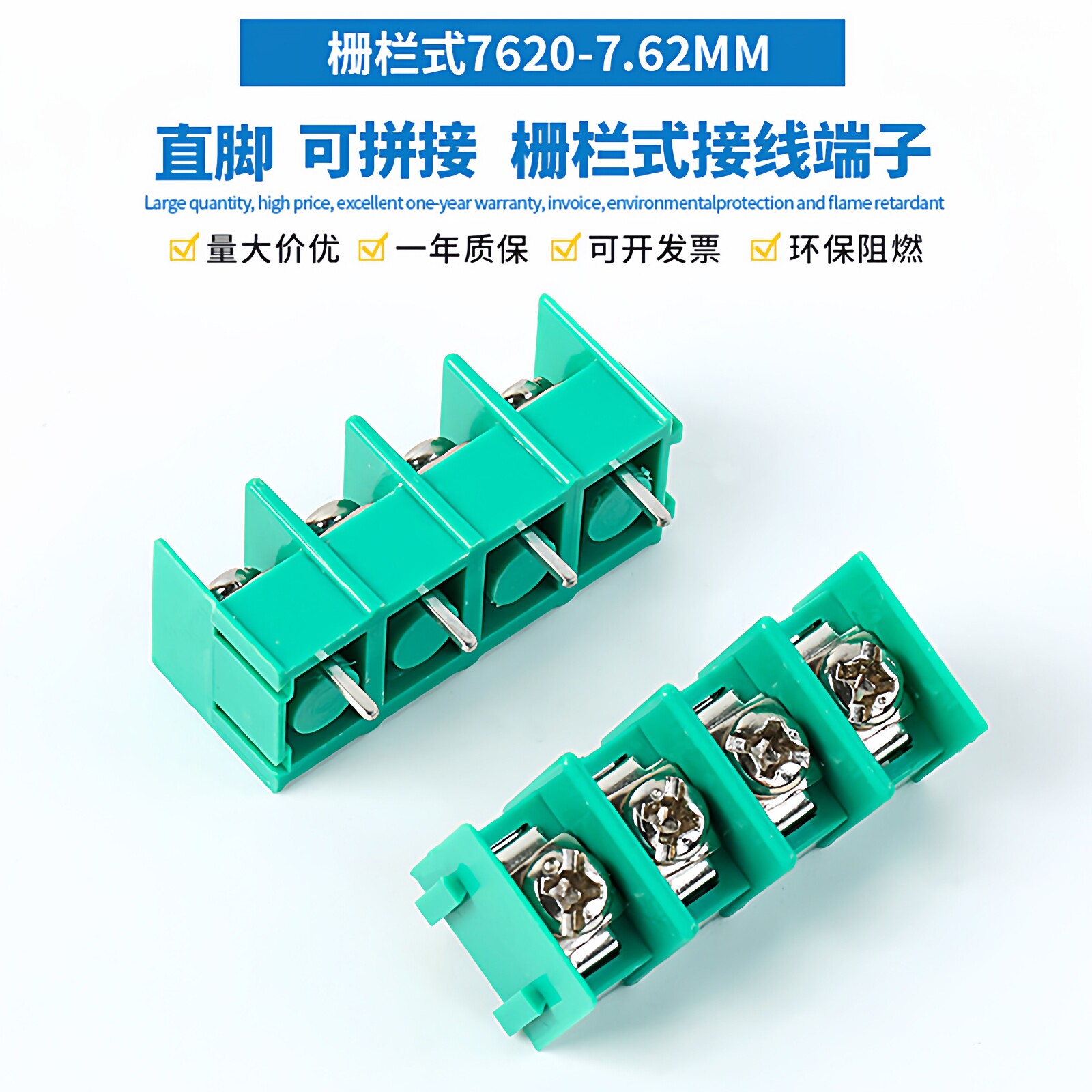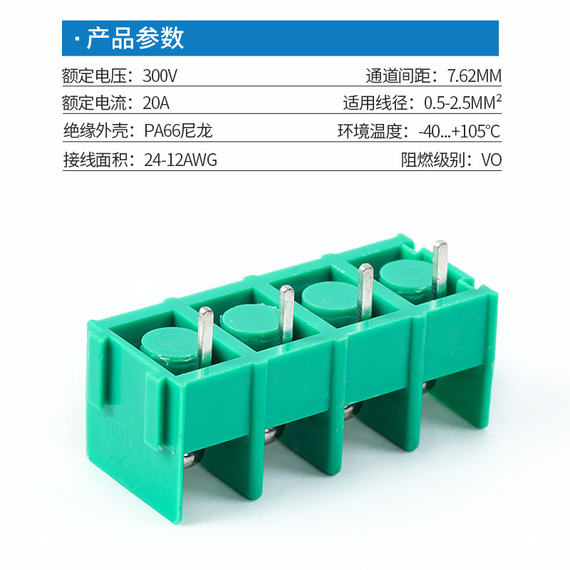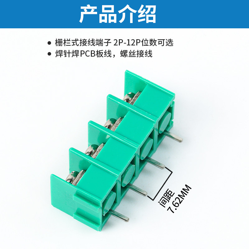 📚 栅栏式PCB接线端子7620-7.62MM接线柱端子台2/4/6P 绿/黑色可拼接