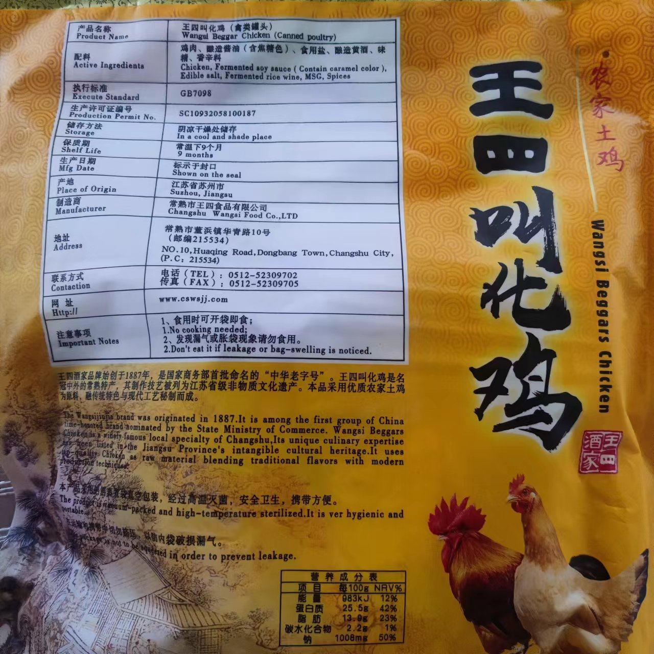 📚 常熟特产王四叫花鸡农家土鸡750g彩袋装王四酒家熟食包邮即食真空