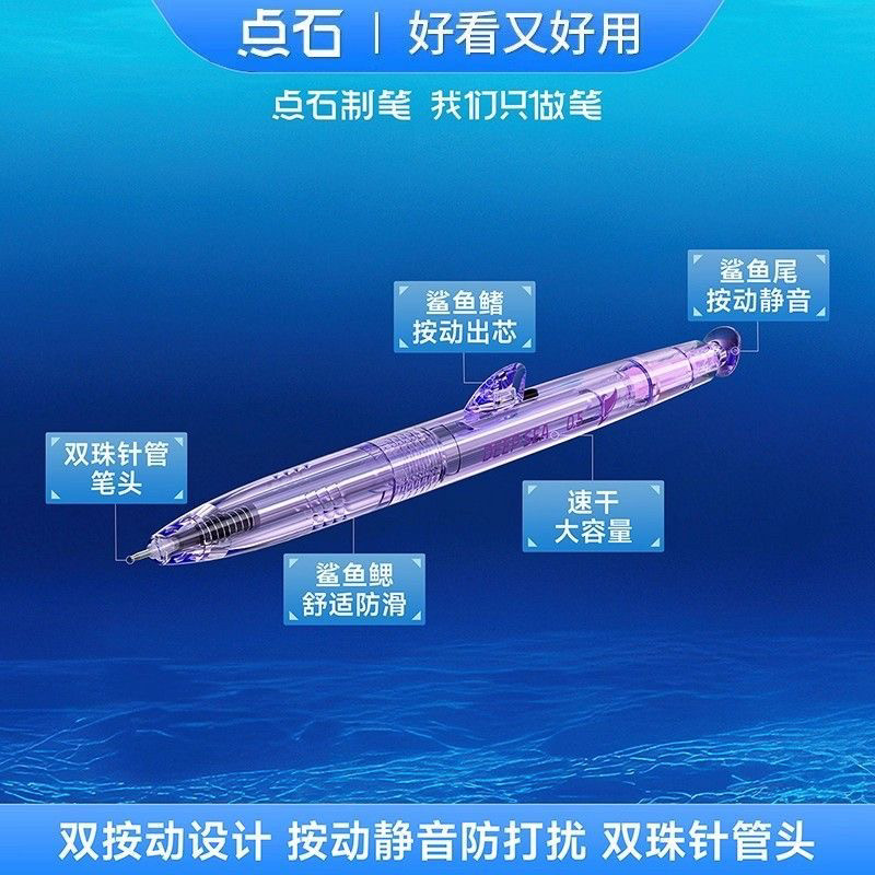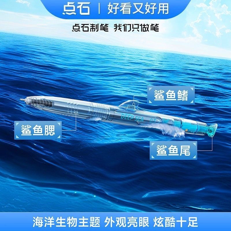 📚 点石0146深海舱巨齿鲨速干按动静音中性笔学生考试专用