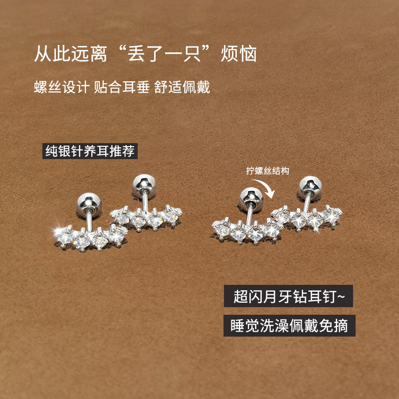 📚 超闪925纯银针耳钉小耳骨钉女高级感轻奢叠戴耳蜗钉耳屏耳骨耳环