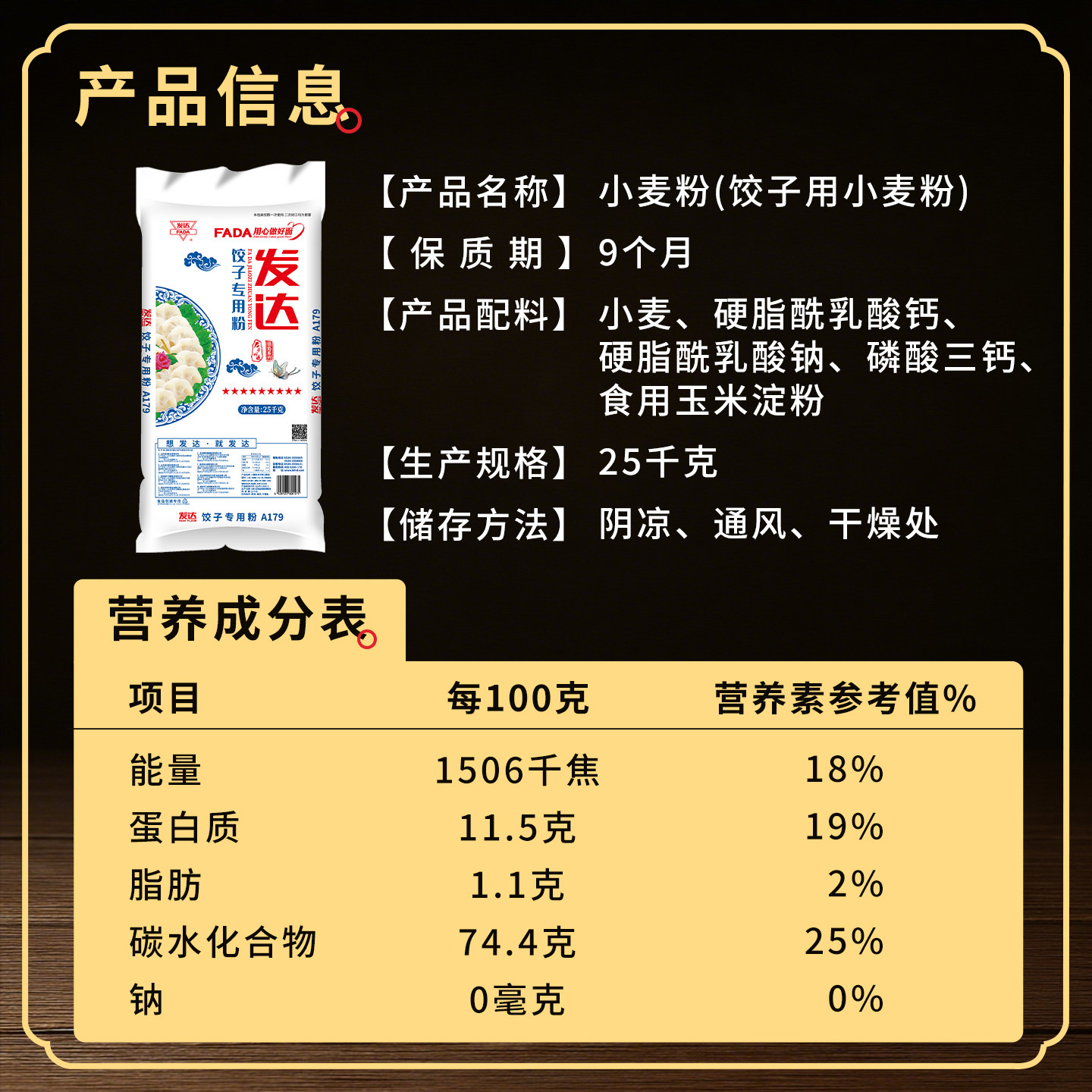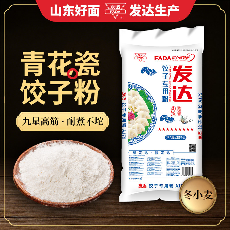 📚 山东发达青花瓷饺子专用粉25kg商用饺子粉速冻水饺面粉饺子皮专用