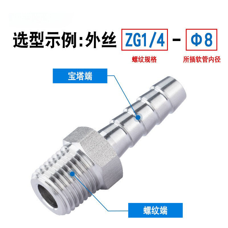 📚 英RZG美制NPT外丝宝塔接头皮接六角棒宝塔PT软皮管转接头12346分