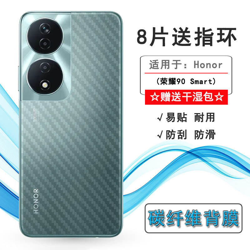 📚 适用荣耀90 Smart软性碳纤维后膜Honor 90 Smart防滑贴纸CLK-NX1简约抗氧化磨砂半高清膜反面膜防划花菱形盾