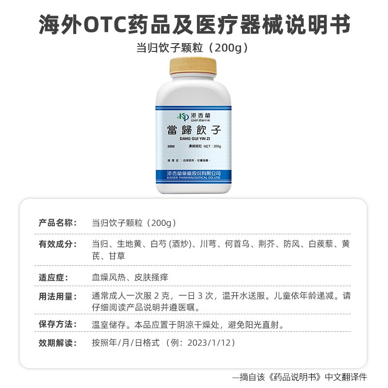 📚 港香兰当归饮子颗粒养血润燥祛风止痒调经补血润肠通便