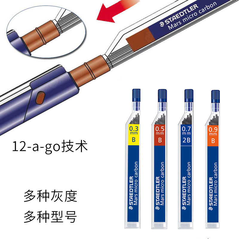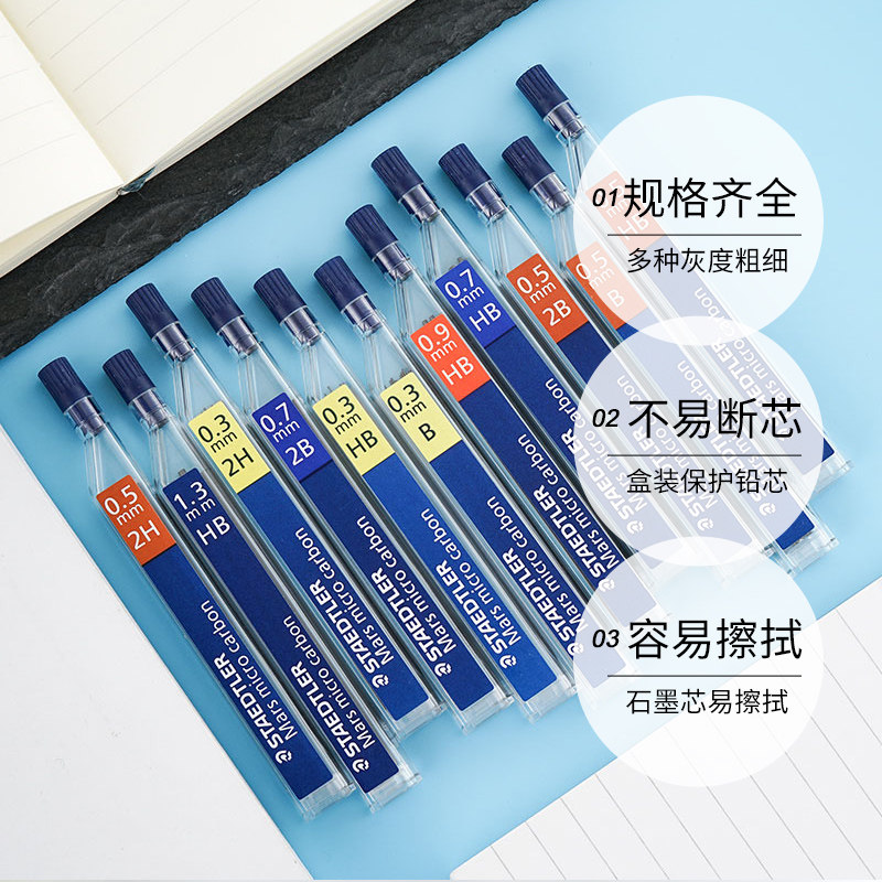 📚 【自营】STAEDTLER施德楼250系列铅芯0.3/0.5/0.7/0.9/1.3mm活动替芯2B铅芯hb绘画专用大容量自动铅笔芯