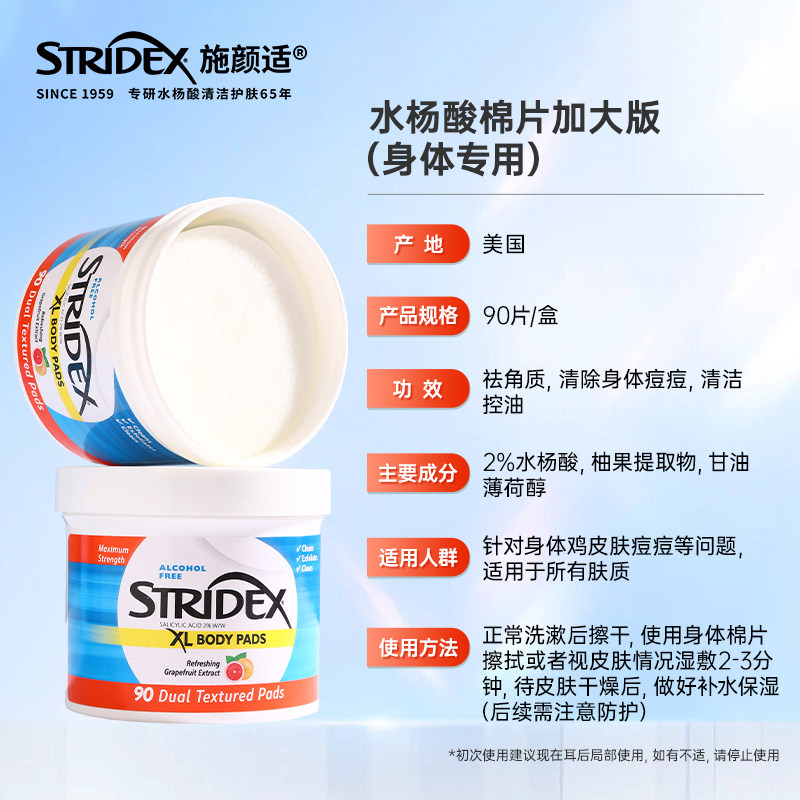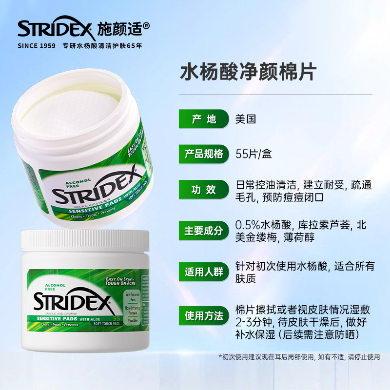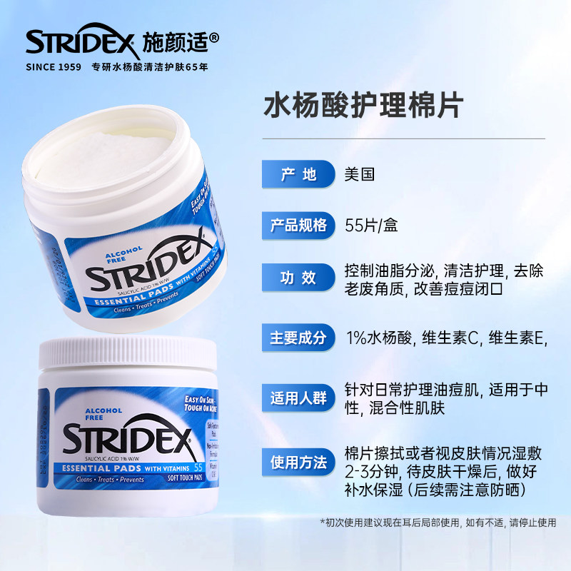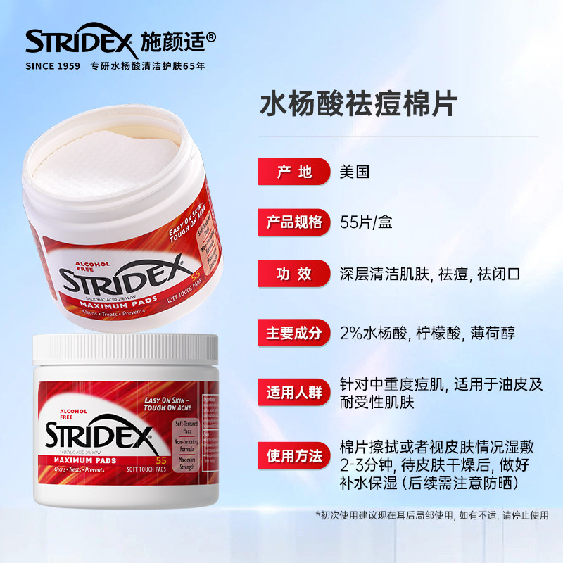 📚 【全球购甄选】美国Stridex施颜适水杨酸棉片祛痘痘去闭口粉刺