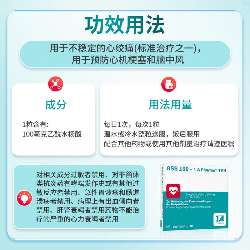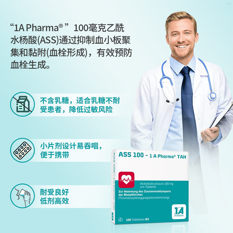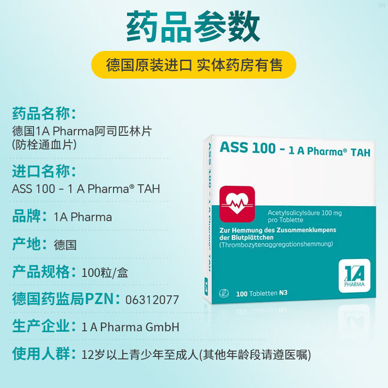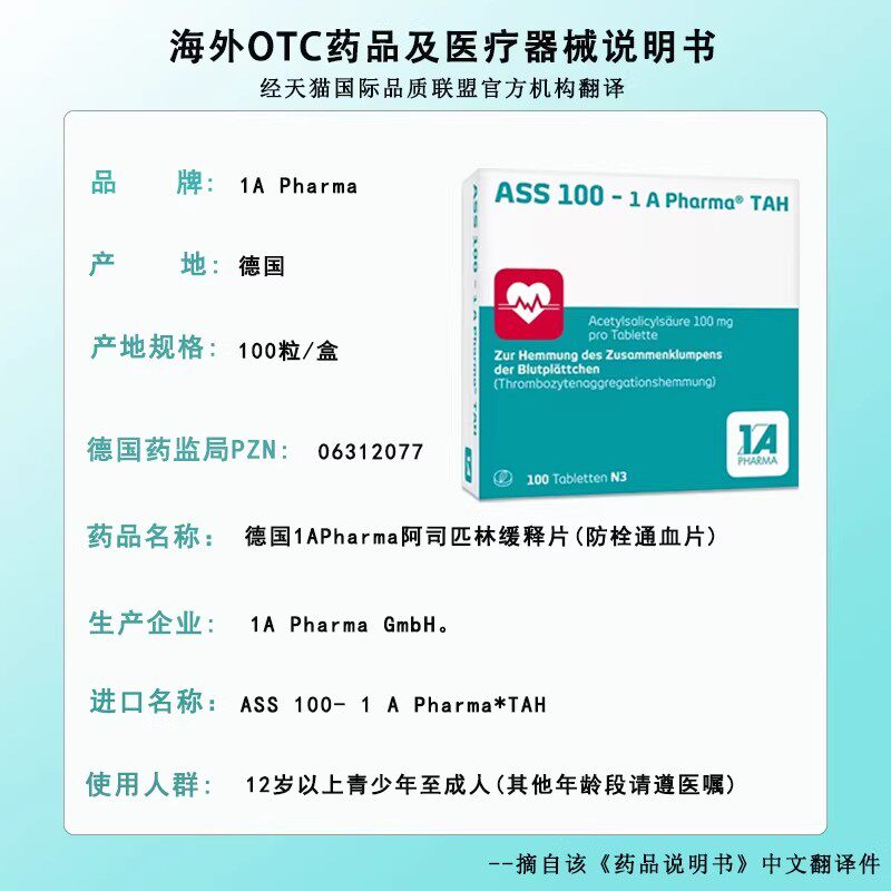📚 德国原装进口1Apharma阿司匹林肠溶片100mg预防血栓心梗抗血栓