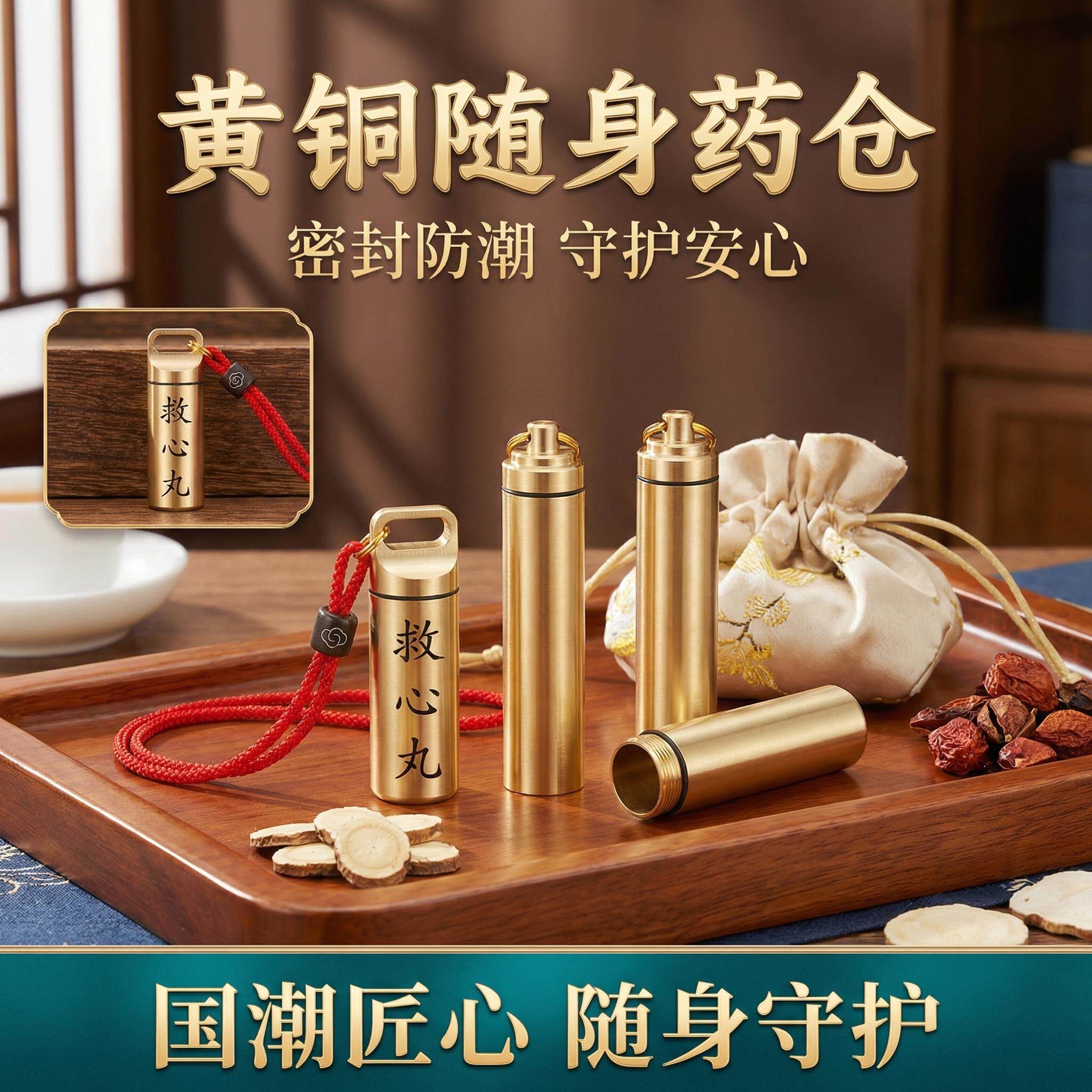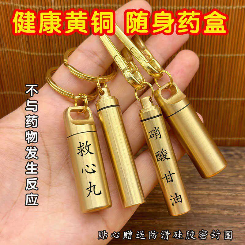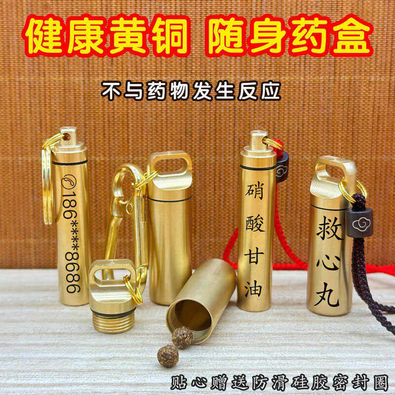 📚 速效救心丸便携瓶外出旅行便携急救药密封收纳瓶心梗随身黄铜药瓶