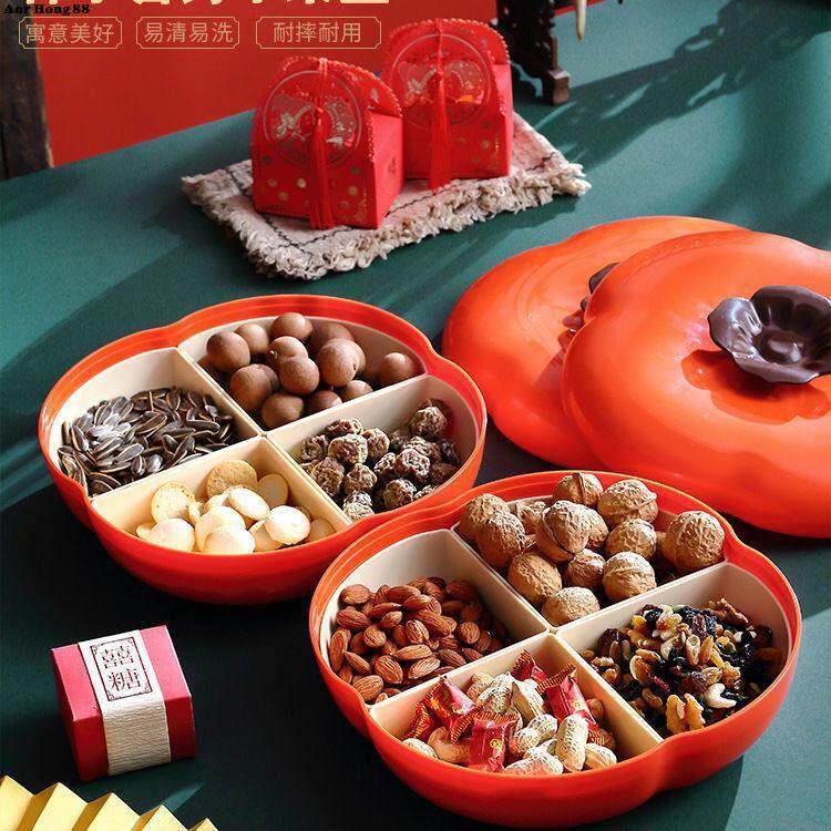 📚 新年柿子果盘家用客厅茶几干果盘喜庆分格花生瓜子糖果零食摆放盘