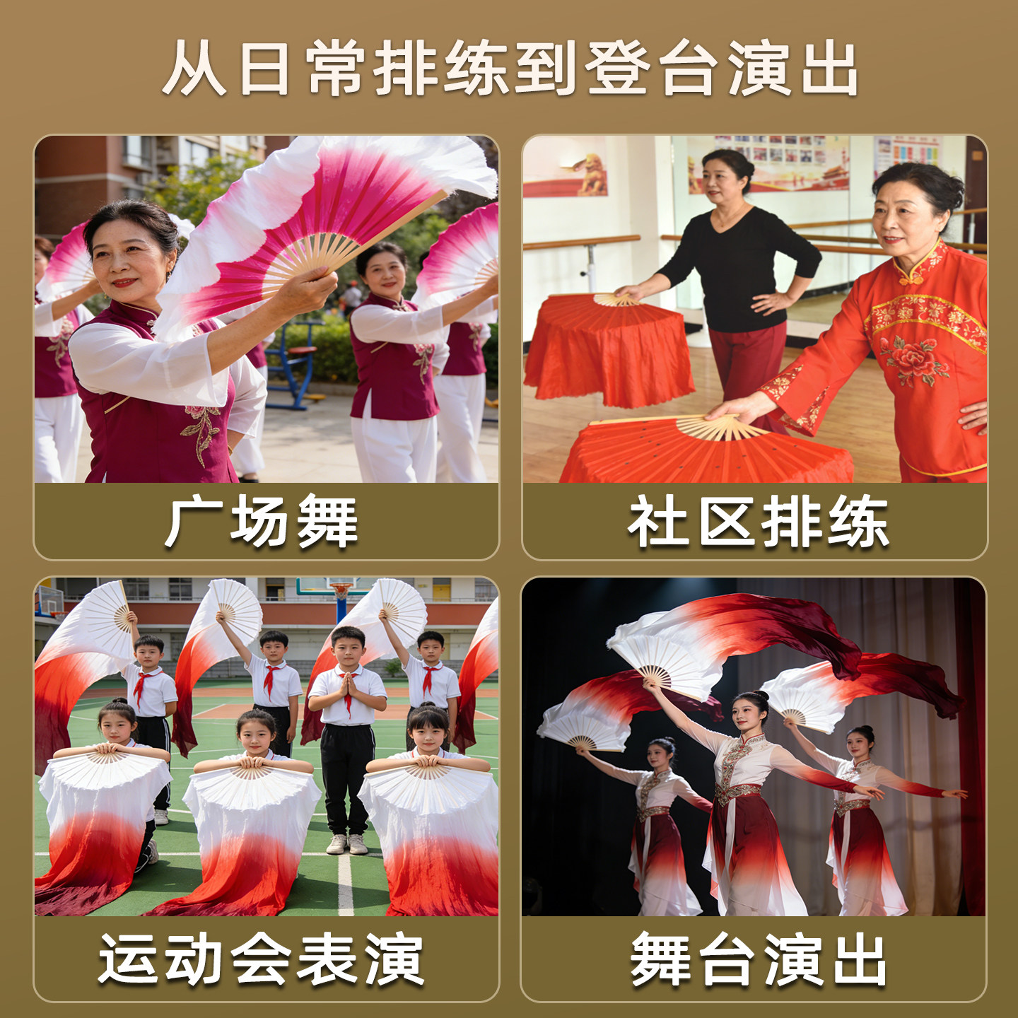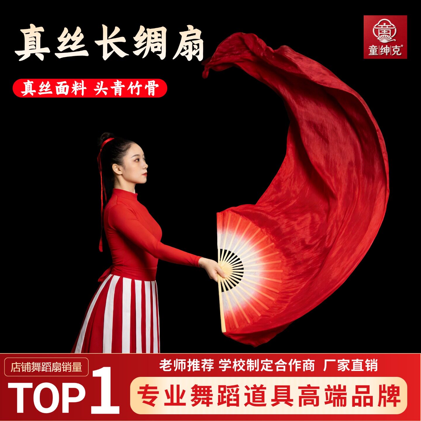 📚 真丝万疆舞蹈扇子长飘古典舞光亮长绸扇渐变演出红色道具跳舞专用