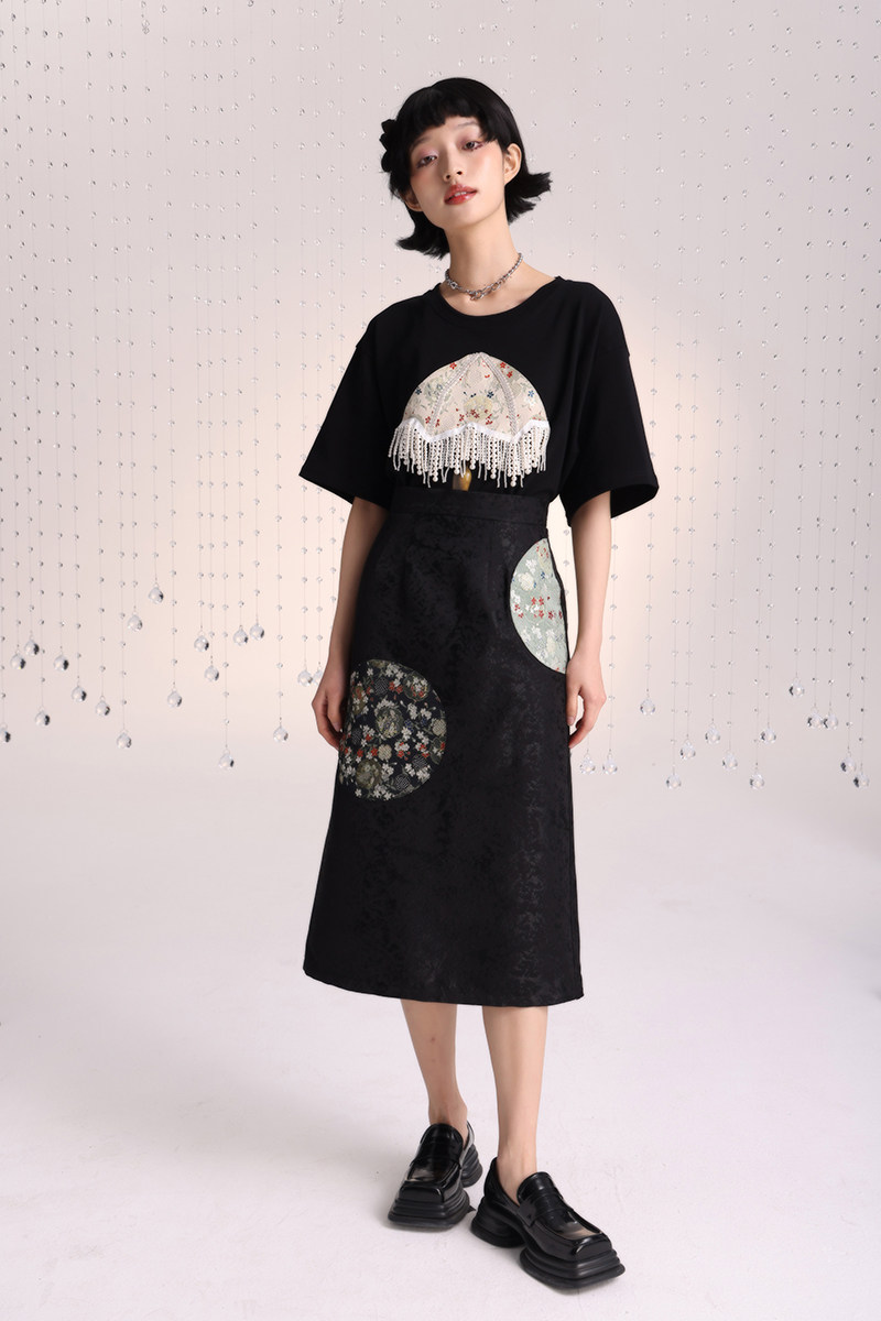 📚 杨二大梦原创「暗里生花」新中式拼花布半身裙2023夏新款国风高腰
