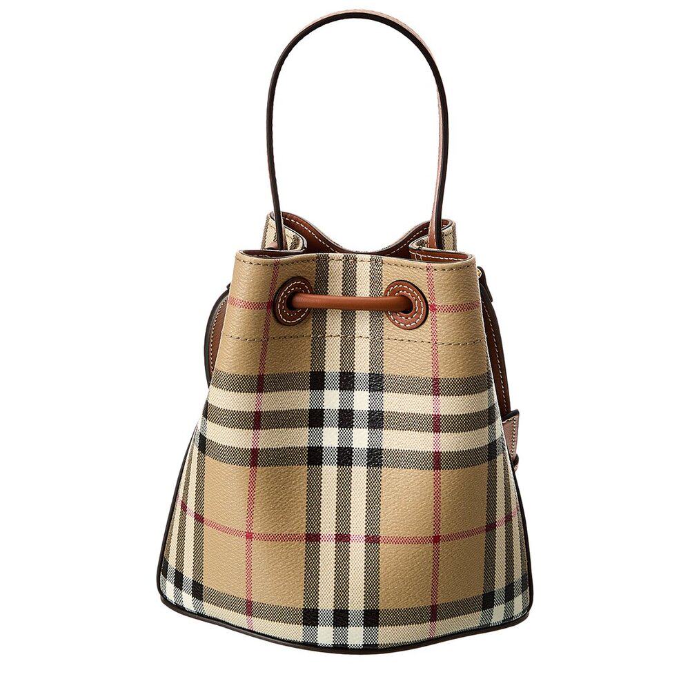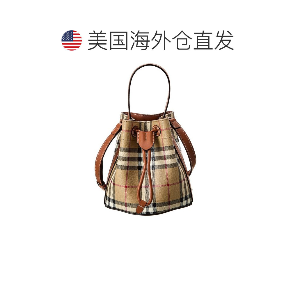 📚 自营Burberry Check Mini E-Canvas & Leather Bucket Bag - beig