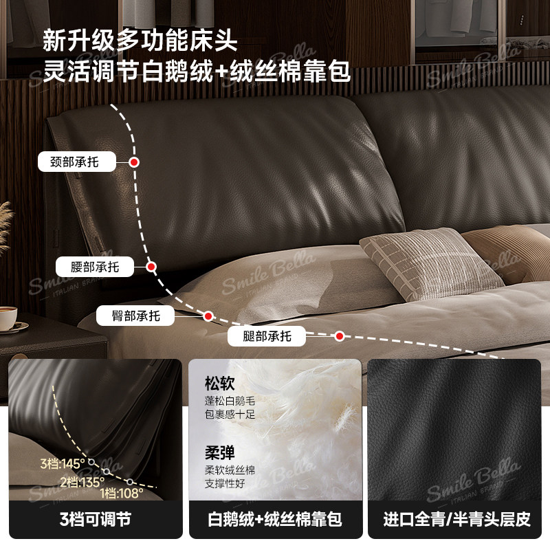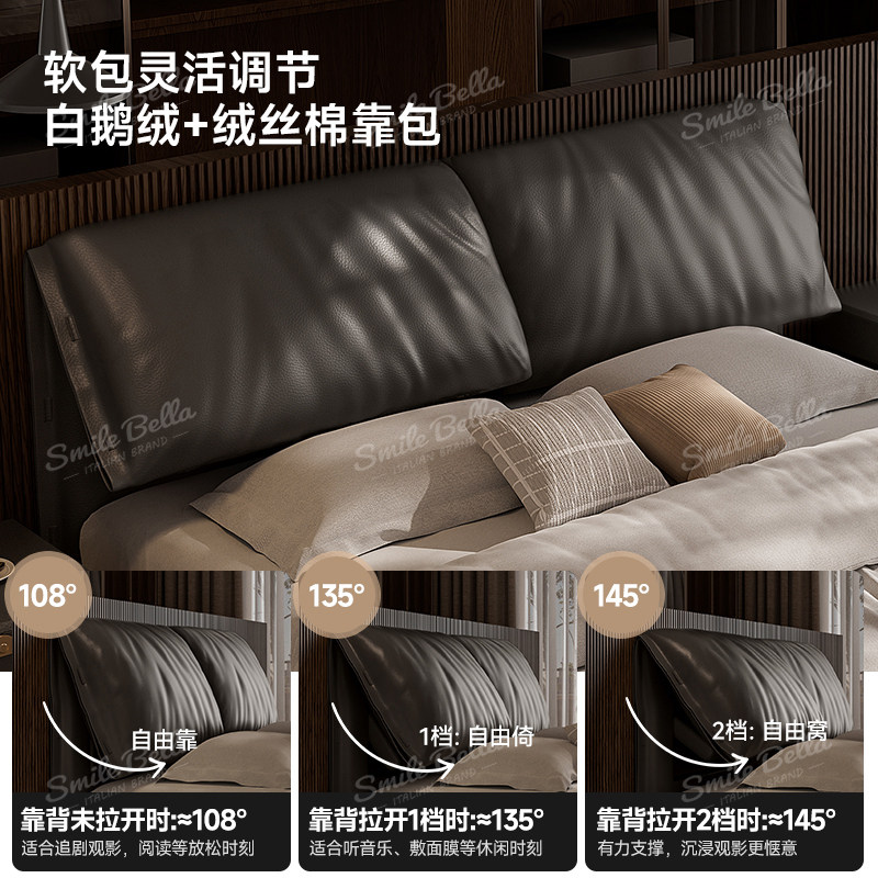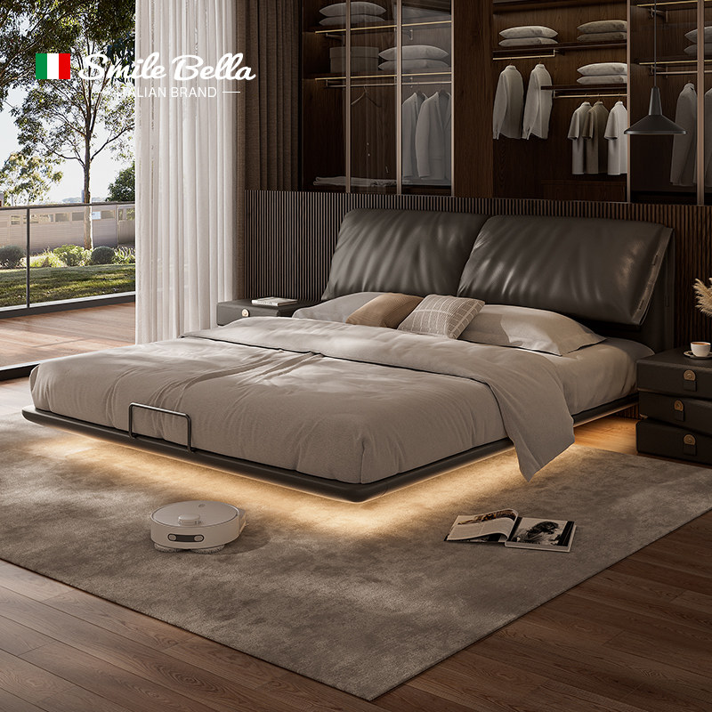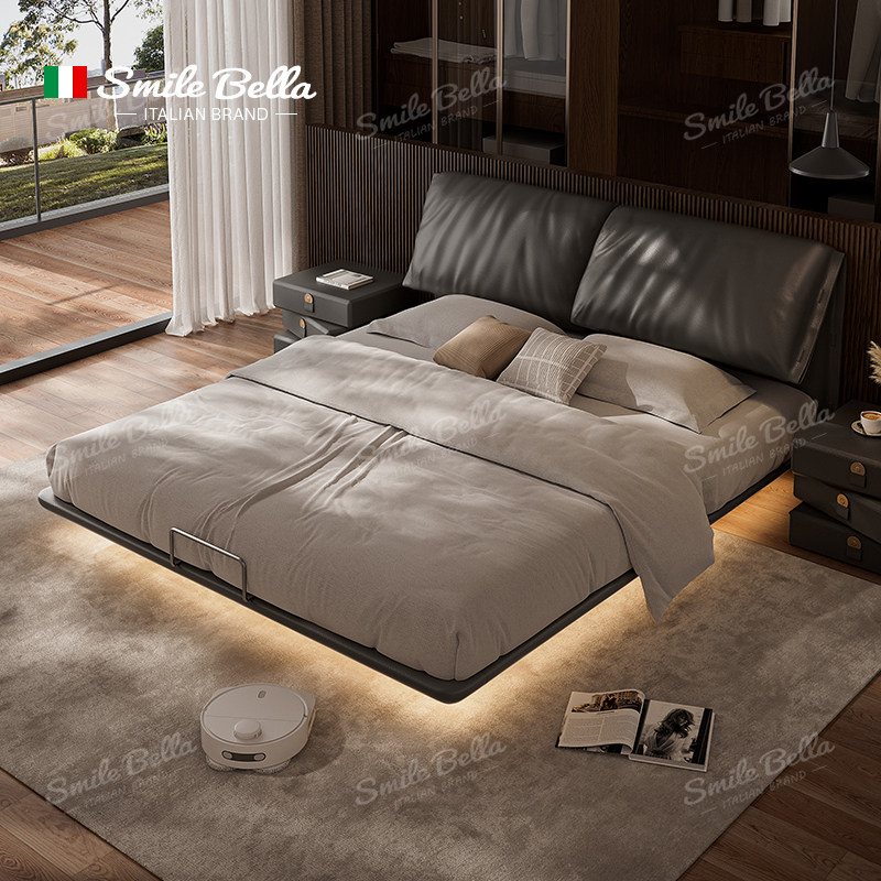 📚 大象耳朵悬浮床主卧高端大气轻奢真皮意式极简储物榉木双人大床