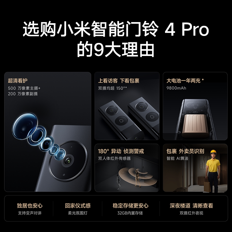 📚 小米智能门铃4Pro超清双摄电子猫眼可视门铃监控网络摄像头家用