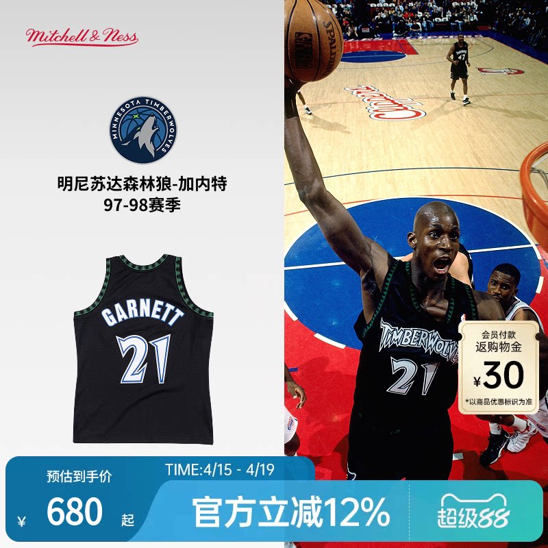 📚 森林狼队加内特97-98赛季NBA官方MN复刻21号球衣SW球迷版