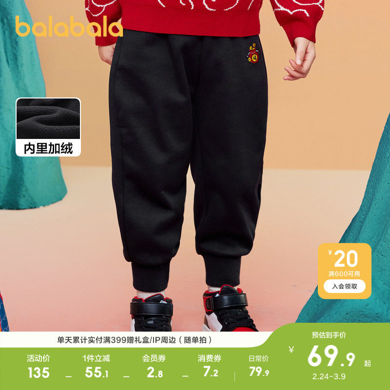 📚 巴拉巴拉童装儿童裤子加绒男童长裤女童宝宝秋冬2026新红色拜年服