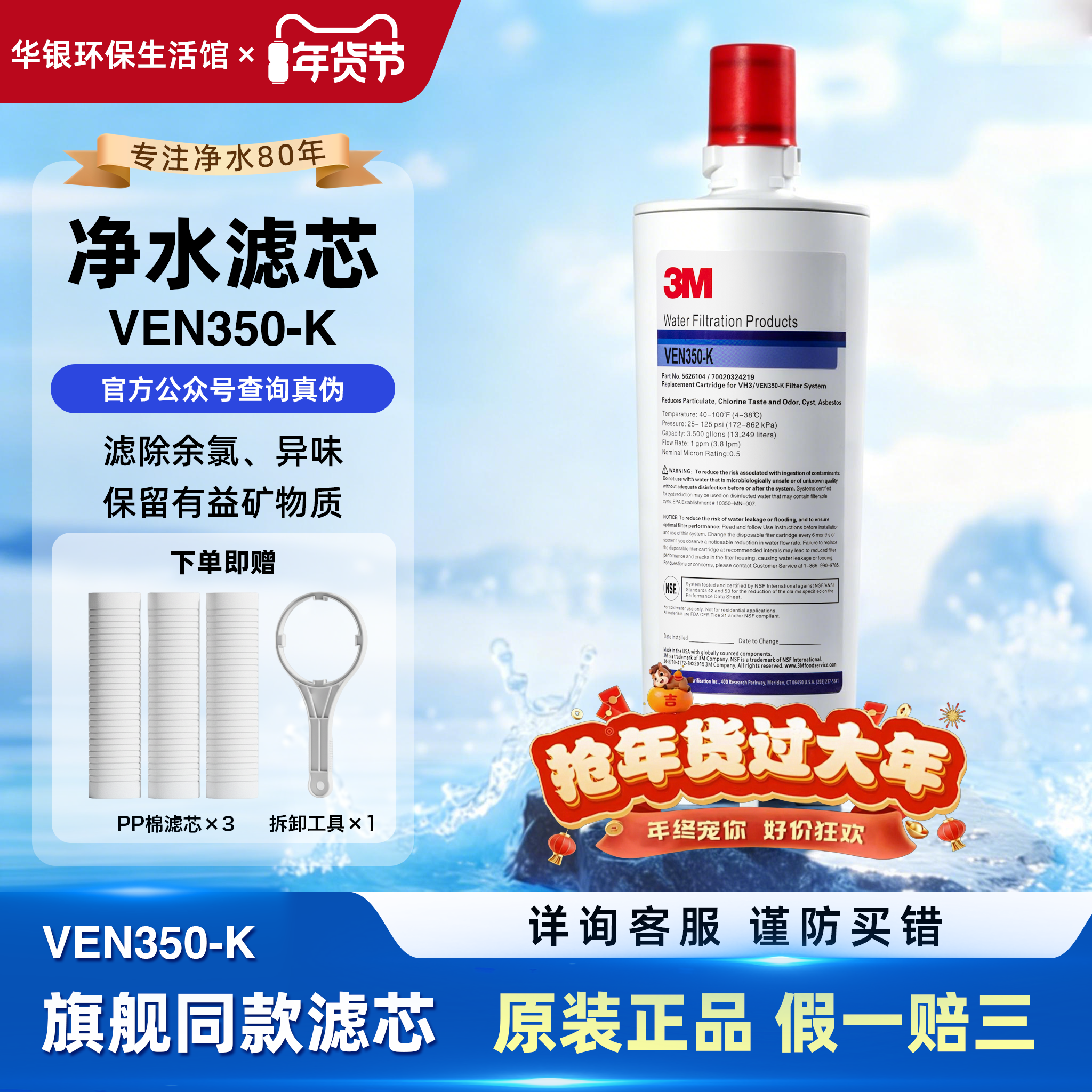 📚 3m滤芯ven350-k除垢 家用厨房净水器过滤直饮 替换滤芯 原装进口