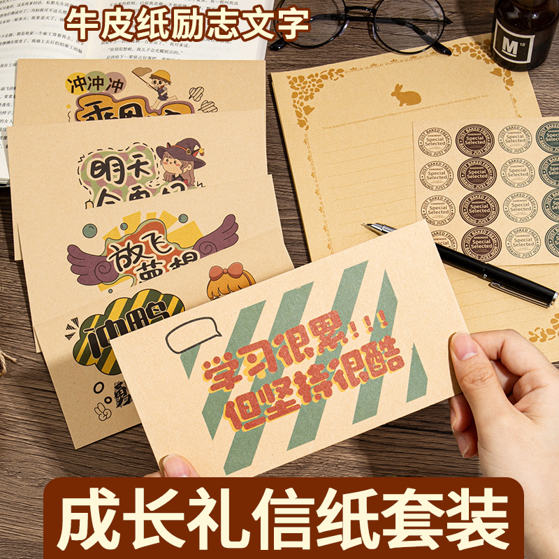 📚 十岁成长礼可爱信封信纸套装牛皮纸加厚学生创意复古10周岁信纸加信封励志生日儿童贺卡手写信送给孩子仪式感