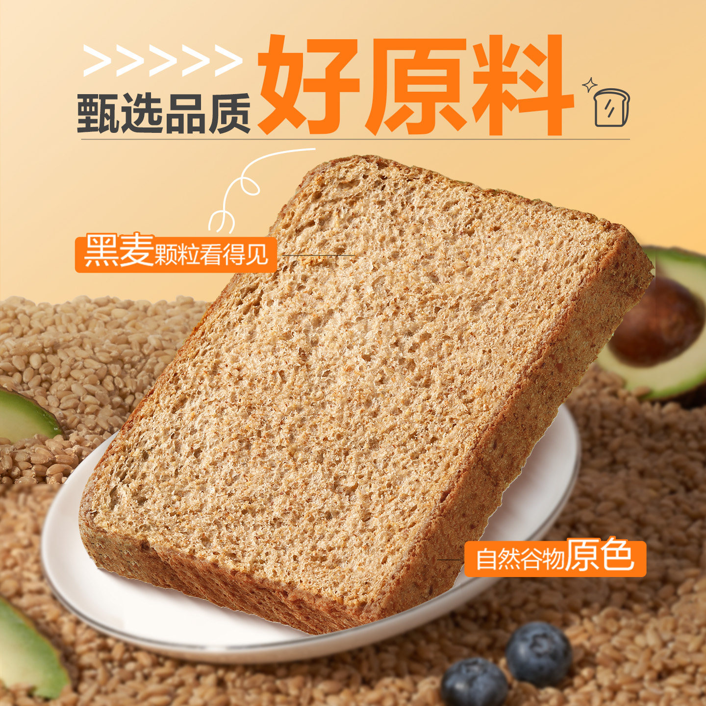 📚 良品铺子黑麦低脂全麦面包吐司片饱腹健身代早餐营养饱腹粗粮整箱