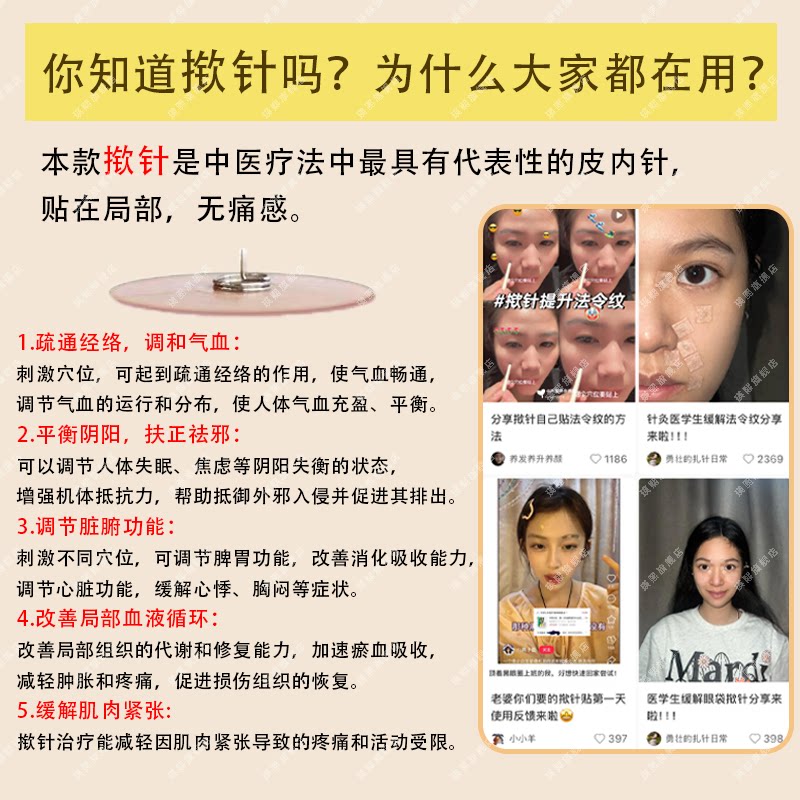 📚 医用揿针穴位贴黑眼圈一次性耳针皮内针医院同款中医针灸祛痘压力
