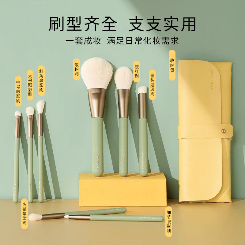 📚 尔木萄绿野星踪化妆刷套装软毛脸部修容散粉刷收纳不易吃粉旗舰店