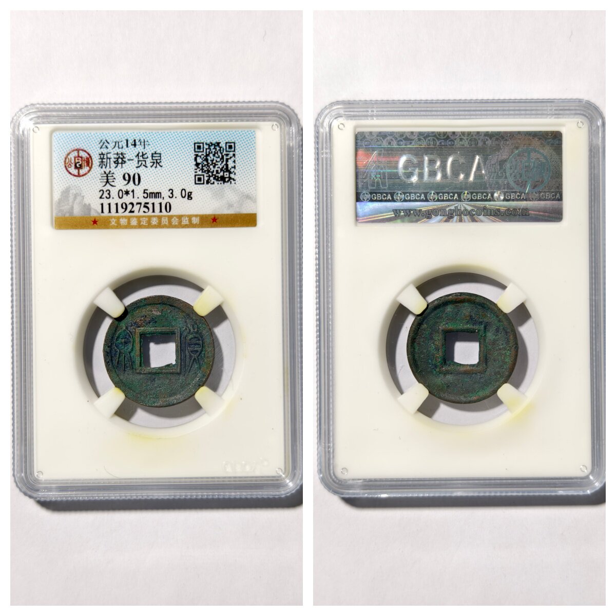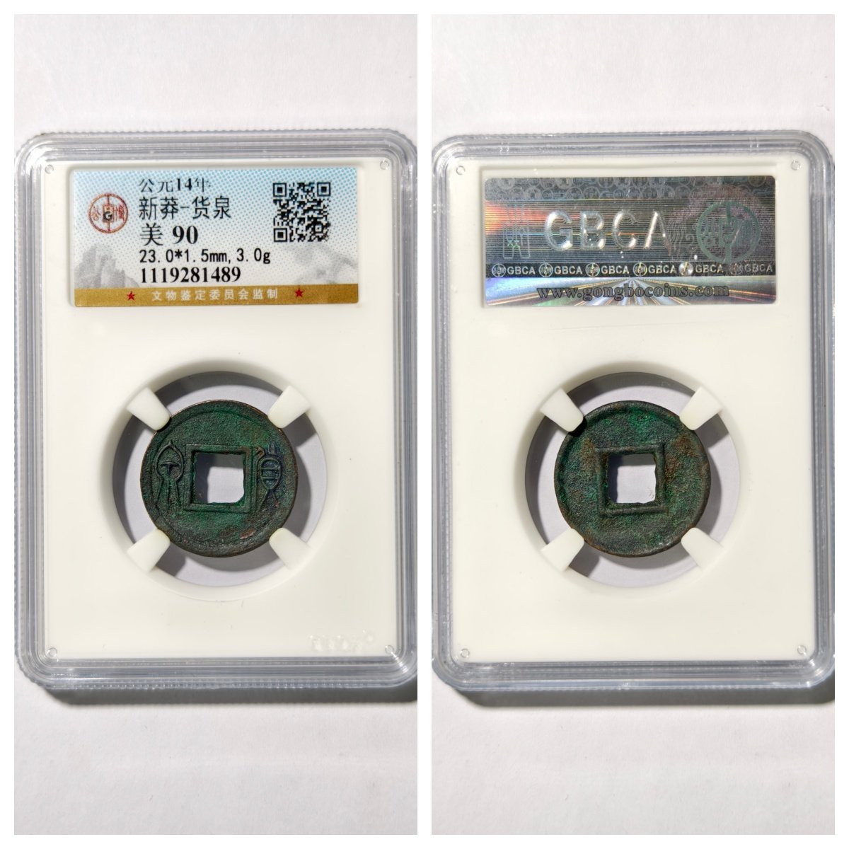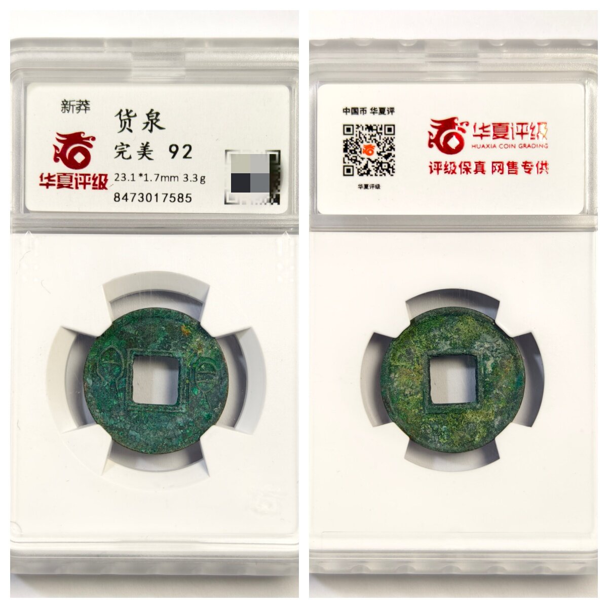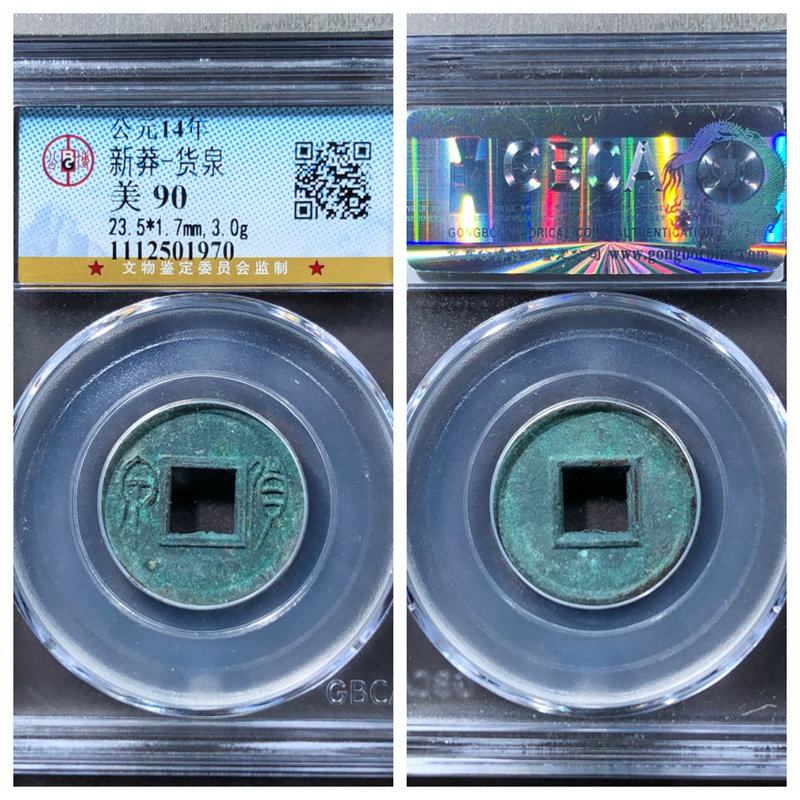 📚 华夏鉴定美92评级盒公元14年新莽货泉古代老铜钱币收藏保真品古董
