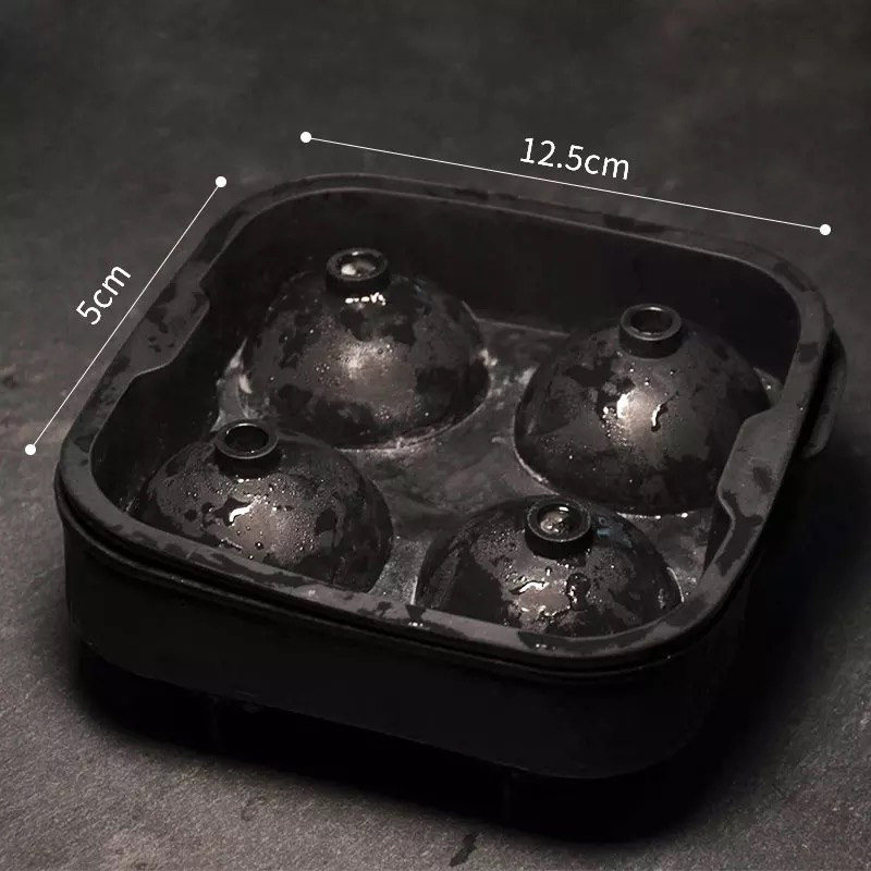 📚 月球咖啡制冰块模具 四连冰球带盖制冰盒威士忌硅胶圆球冰格调酒