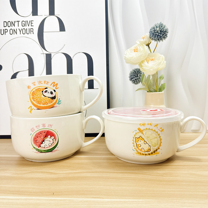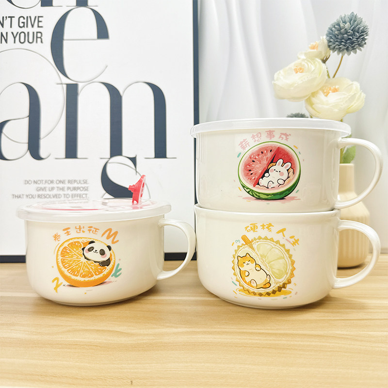 📚 陶瓷保鲜碗泡面杯带盖带手柄学生上班微波炉加热密封便当饭盒饭碗