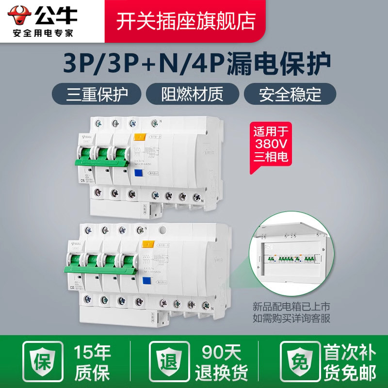 📚 公牛开关插座漏电保护器3p4p家用断路器空气开关空开闸25A32A63A
