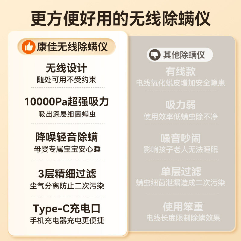 📚 康佳除螨仪紫外线杀菌机家用床上吸尘器无线除螨机大吸力手持飓风