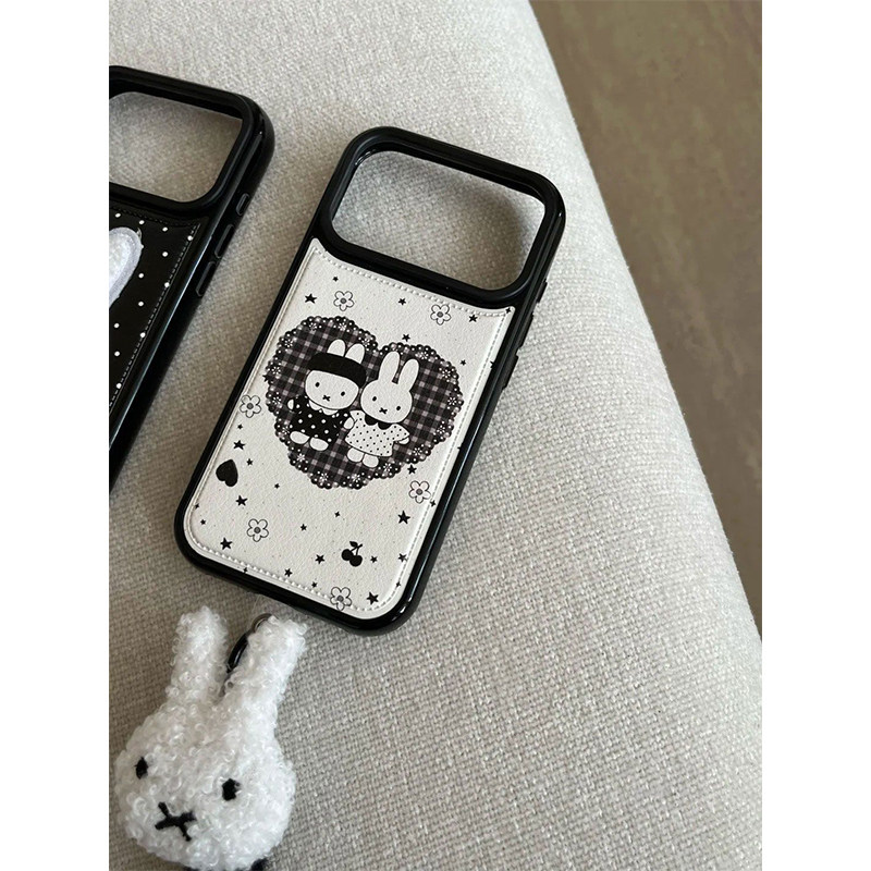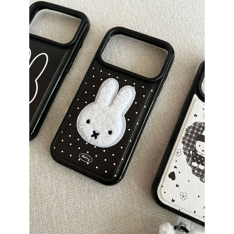 📚 刺绣米菲兔黑绳适用iPhone17PROMAX皮纹手机壳新款苹果16pro女15plus软壳13/12/11保护套XSXR可爱6/7/8Plus