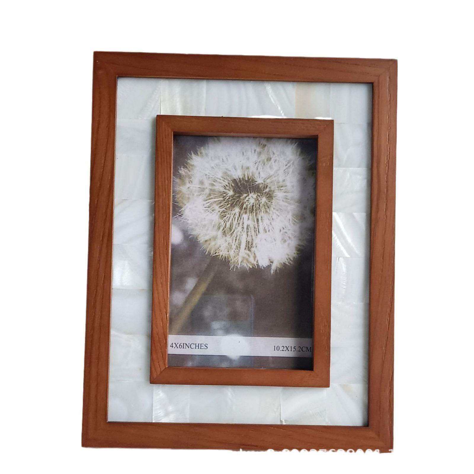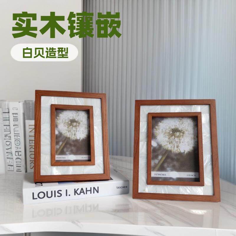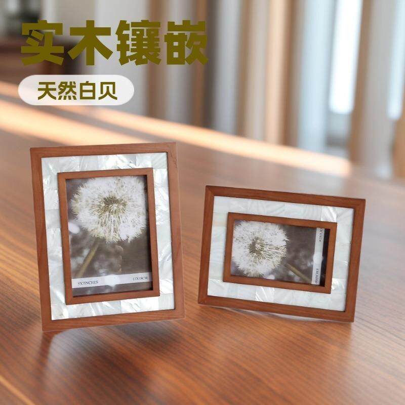 📚 水曲柳实木镶嵌天然白贝横式 竖式相框摆台,简约实木边框镶贝壳