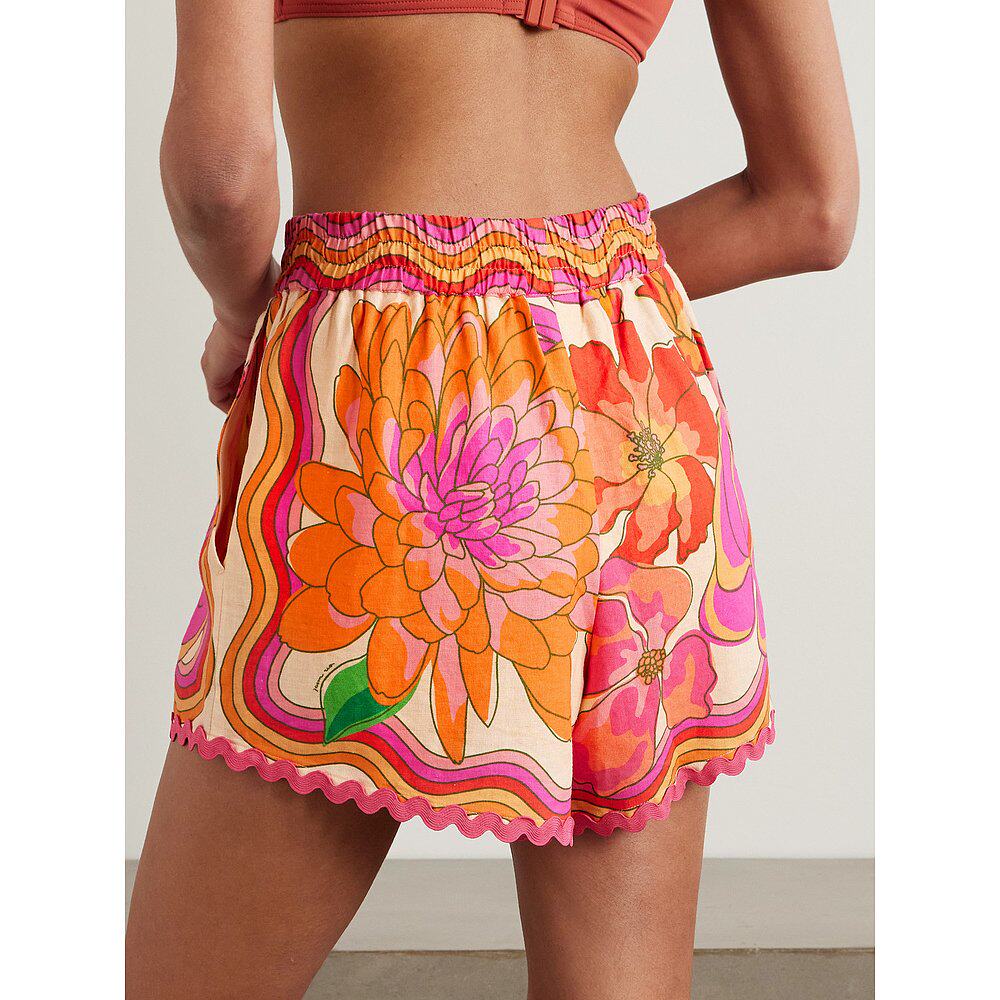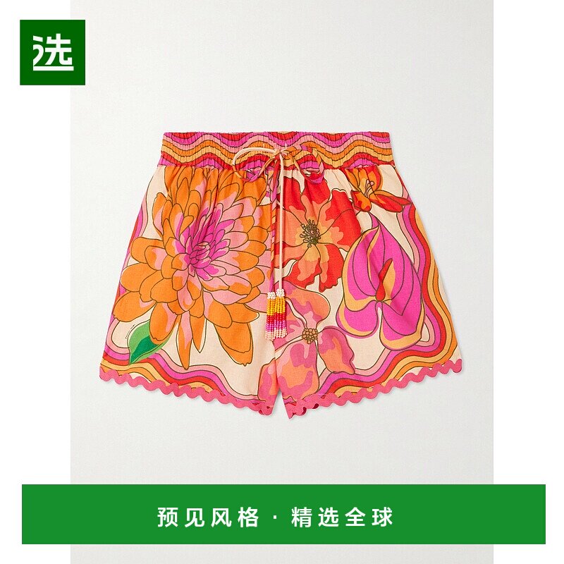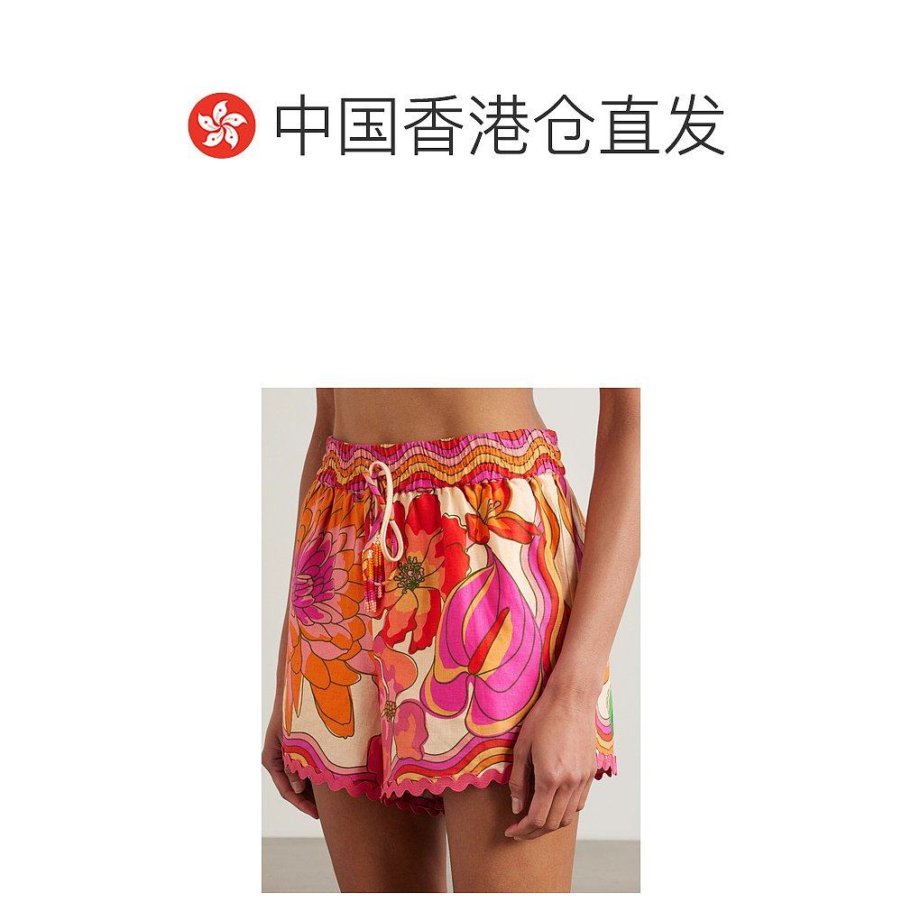 📚 香港直邮FARM RIO 女士 Spring Affair 串珠精饰印花亚麻混纺短裤
