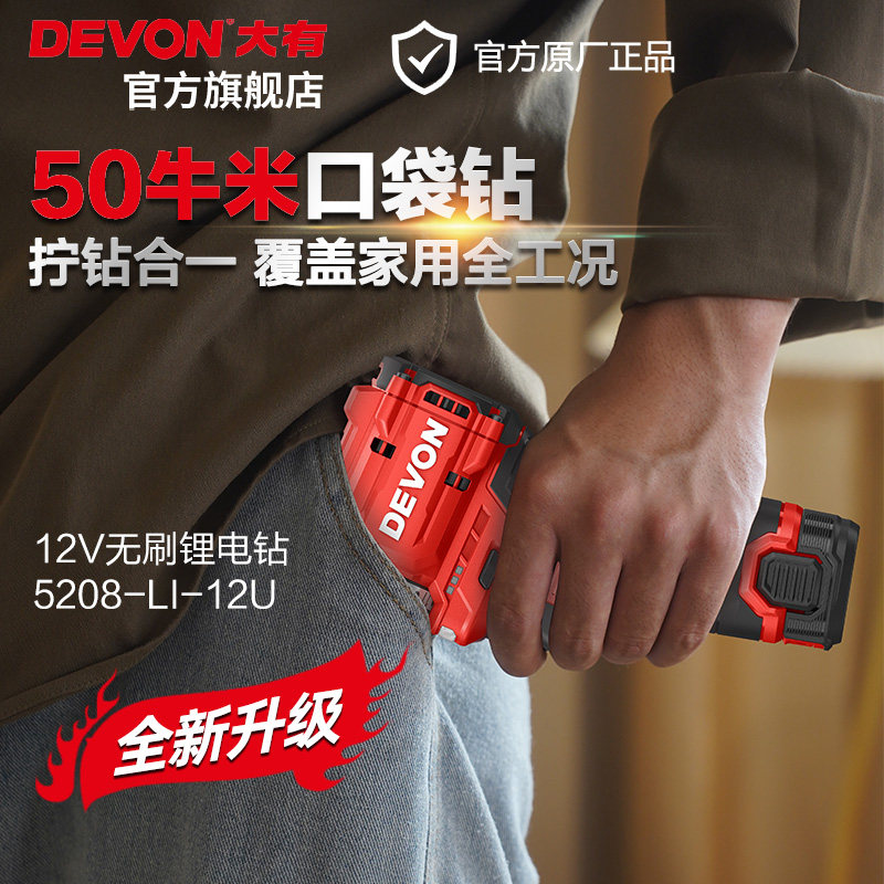 📚 大有12V无刷冲击钻5209手电钻家用手枪钻5208充电螺丝批锂电工具