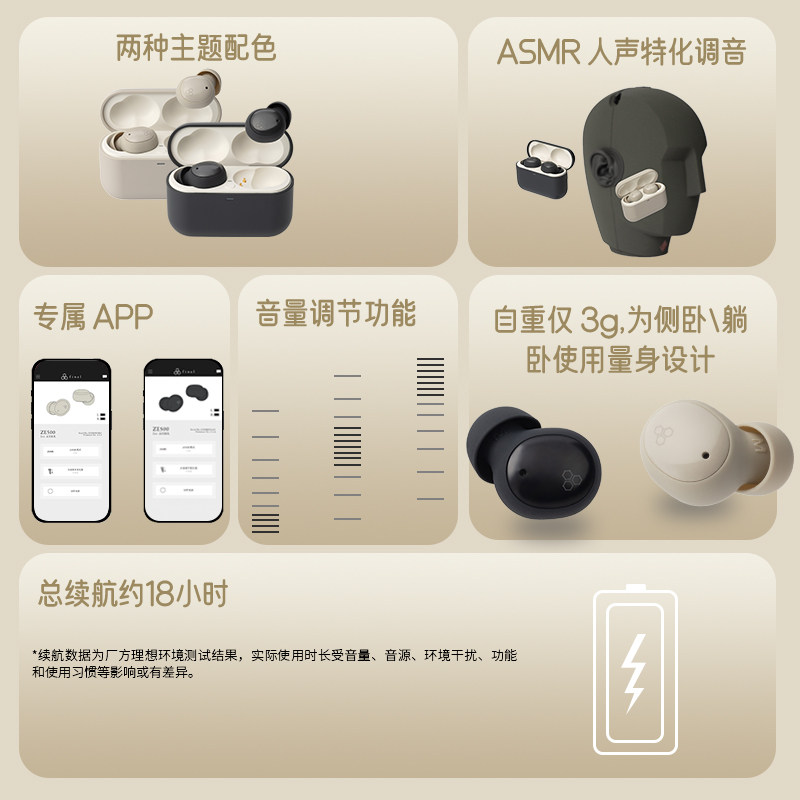 📚 final ZE500 for ASMR真无线蓝牙耳机ASMR睡觉耳机专用侧睡不压耳