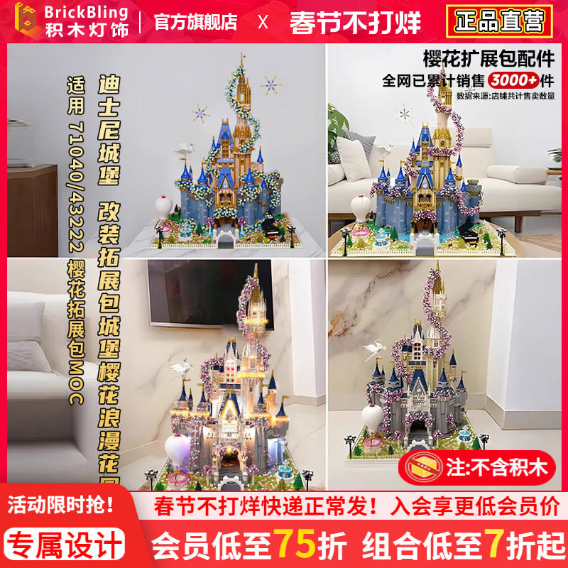 📚 适用乐高43222迪士尼城堡积木71040改装拓展包樱花moc花园展示盒