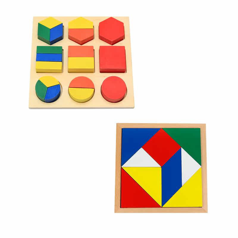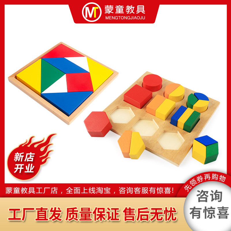 📚 蒙氏早教数学教具分解几何盘四方拼板不规则形状拼图宝宝益智玩具