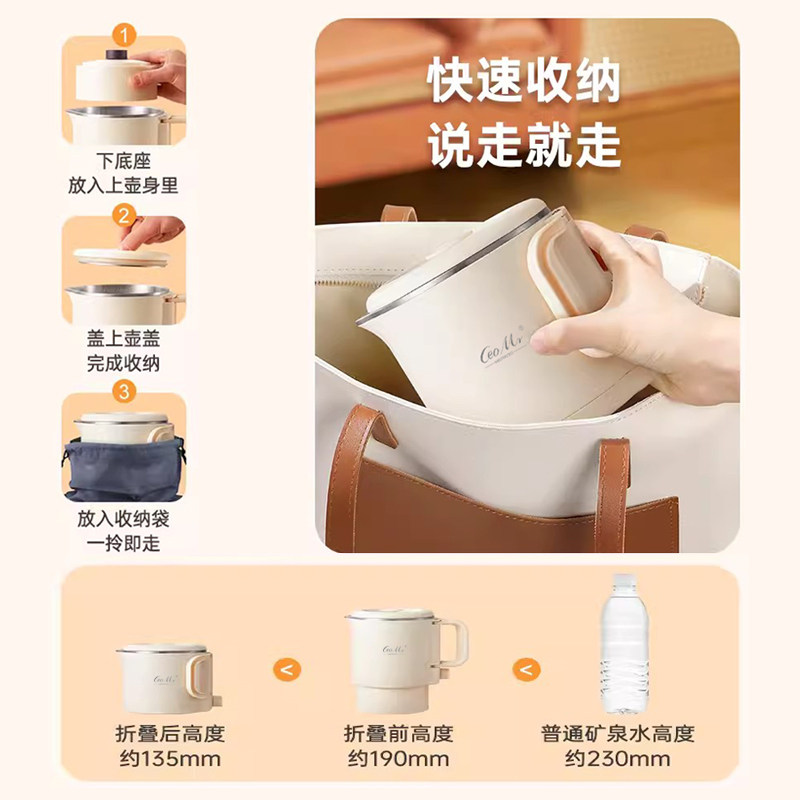 📚 英国CeoMr折叠烧水壶便携式家用旅行宿舍出差电热水壶不锈钢内胆